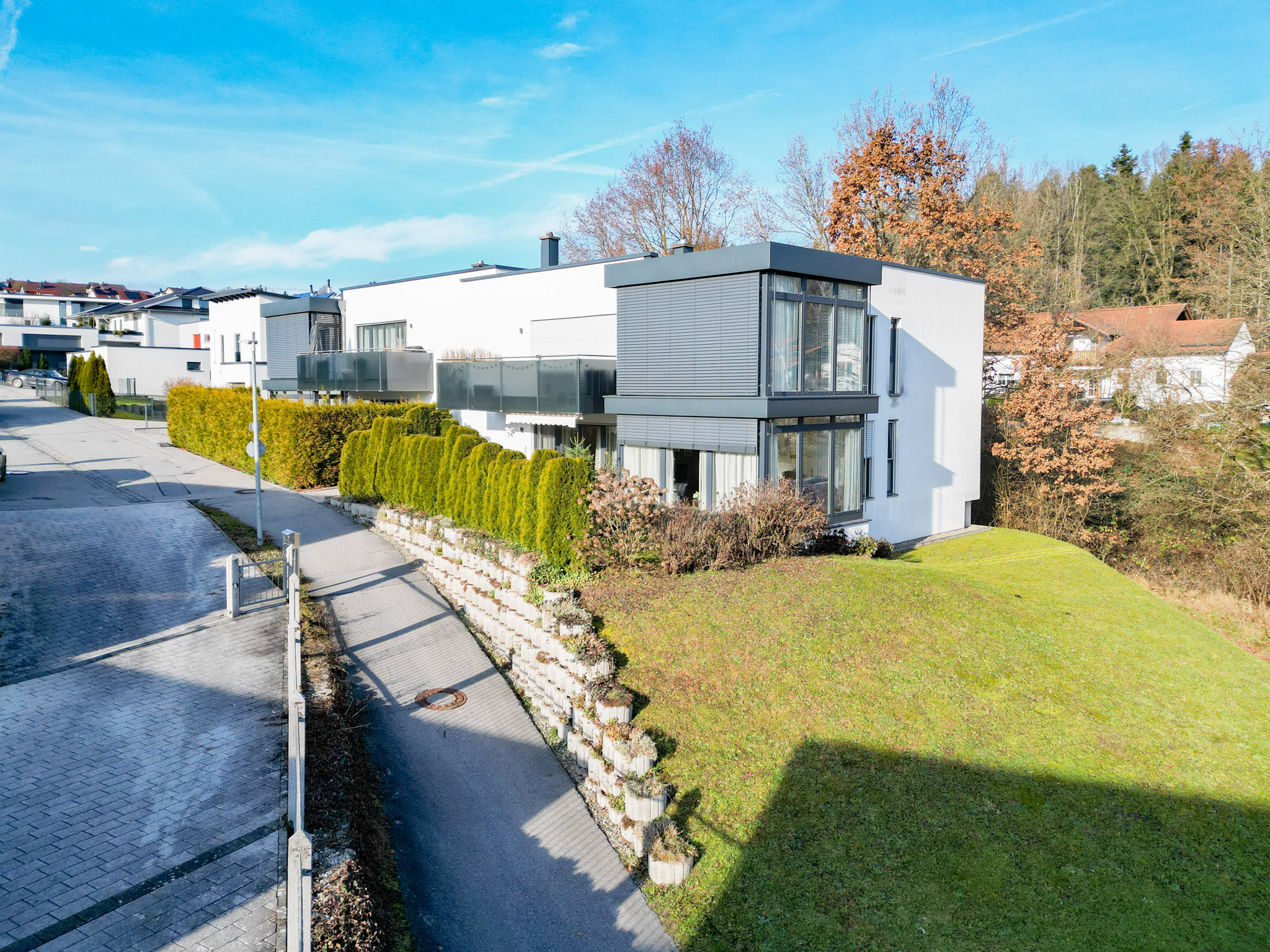 Grubweg zeigt sich hier von seiner besten Seite: Die Wohnung befindet sich am Ende einer Sackgasse in einer exklusiven Siedlungslage: Ruhig, gepflegt und mit einem Wohnumfeld, das man nicht überall findet. Es ist die Art von Lage, in der man sofort spürt, dass die Nachbarschaft Wert auf Qualität und ein angenehmes Miteinander legt.