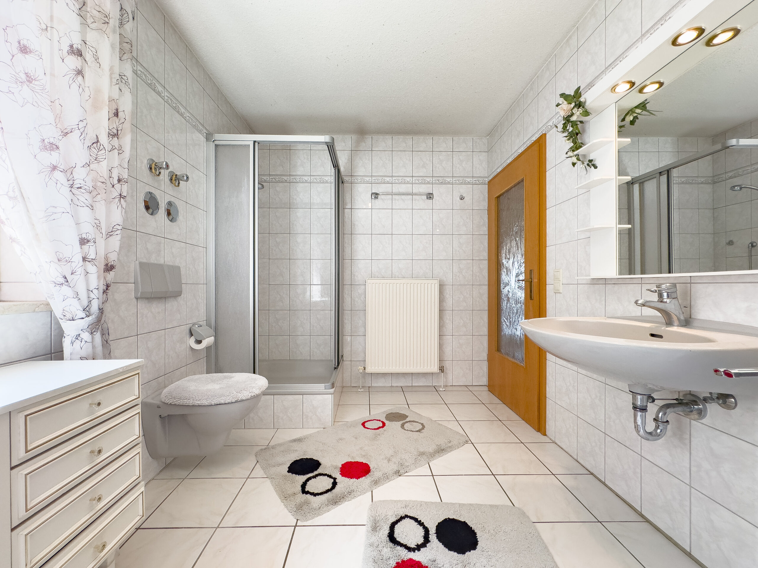 - Badausstattung: Dusche, Badewanne, Fenster