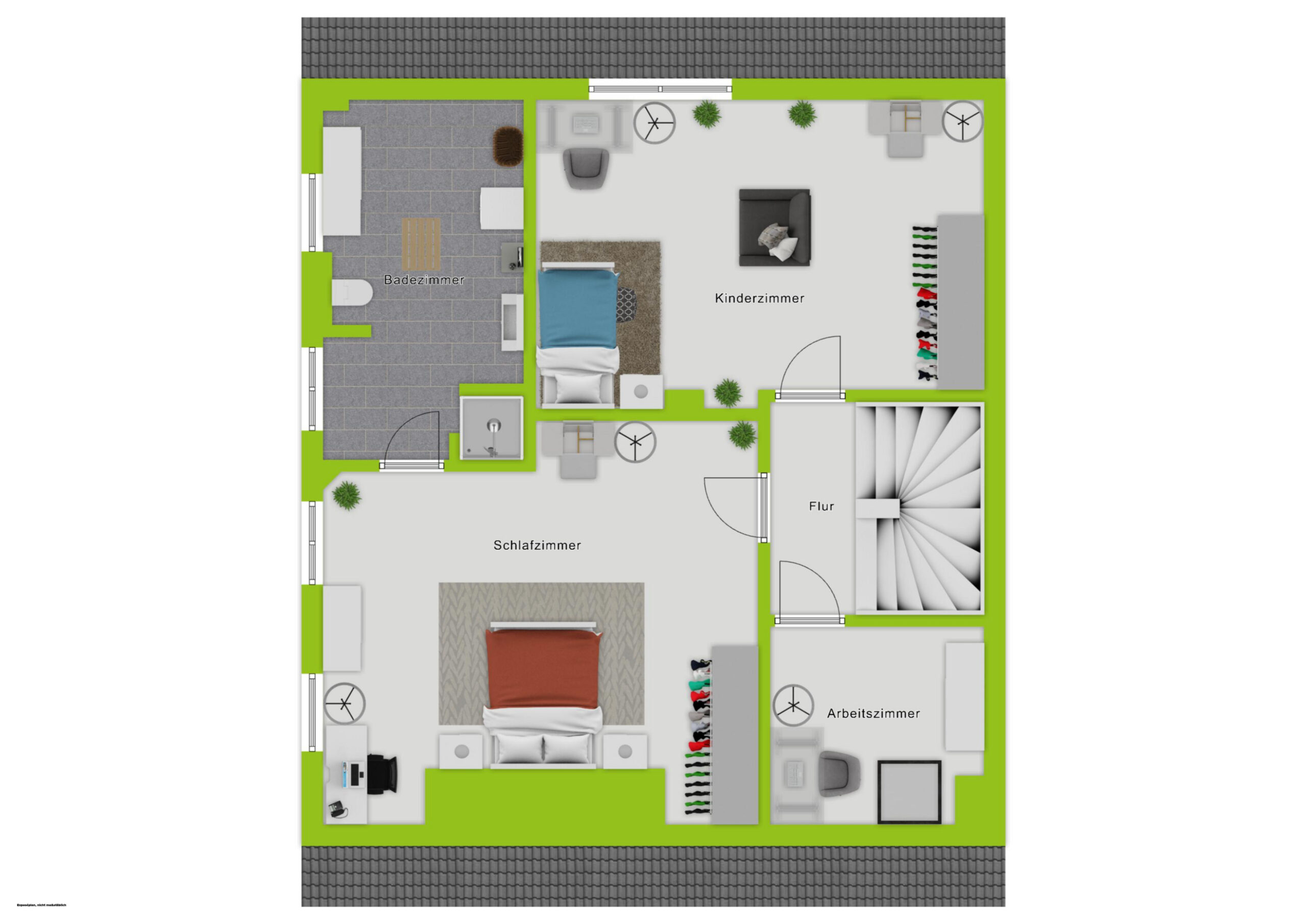 – Kinderbad mit Dusche, Waschbecken und WCDachgeschoss – ca. 52,71 m² Wohnfläche
