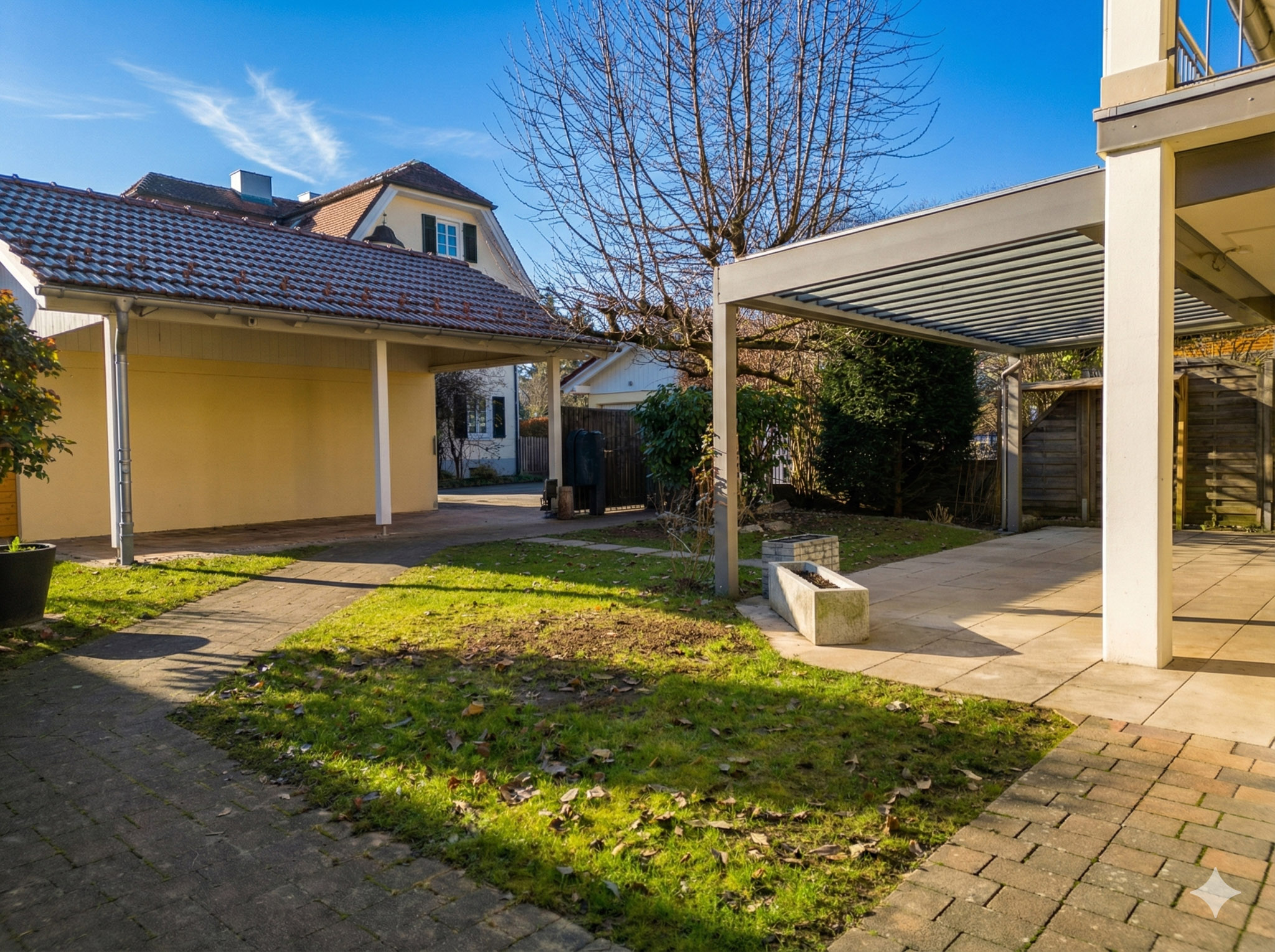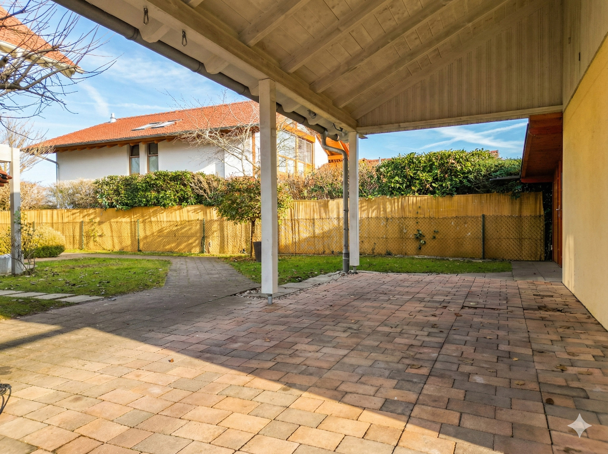 – gepflasterter Carport neben der Garage, ebenfalls mit elektrischem Tor