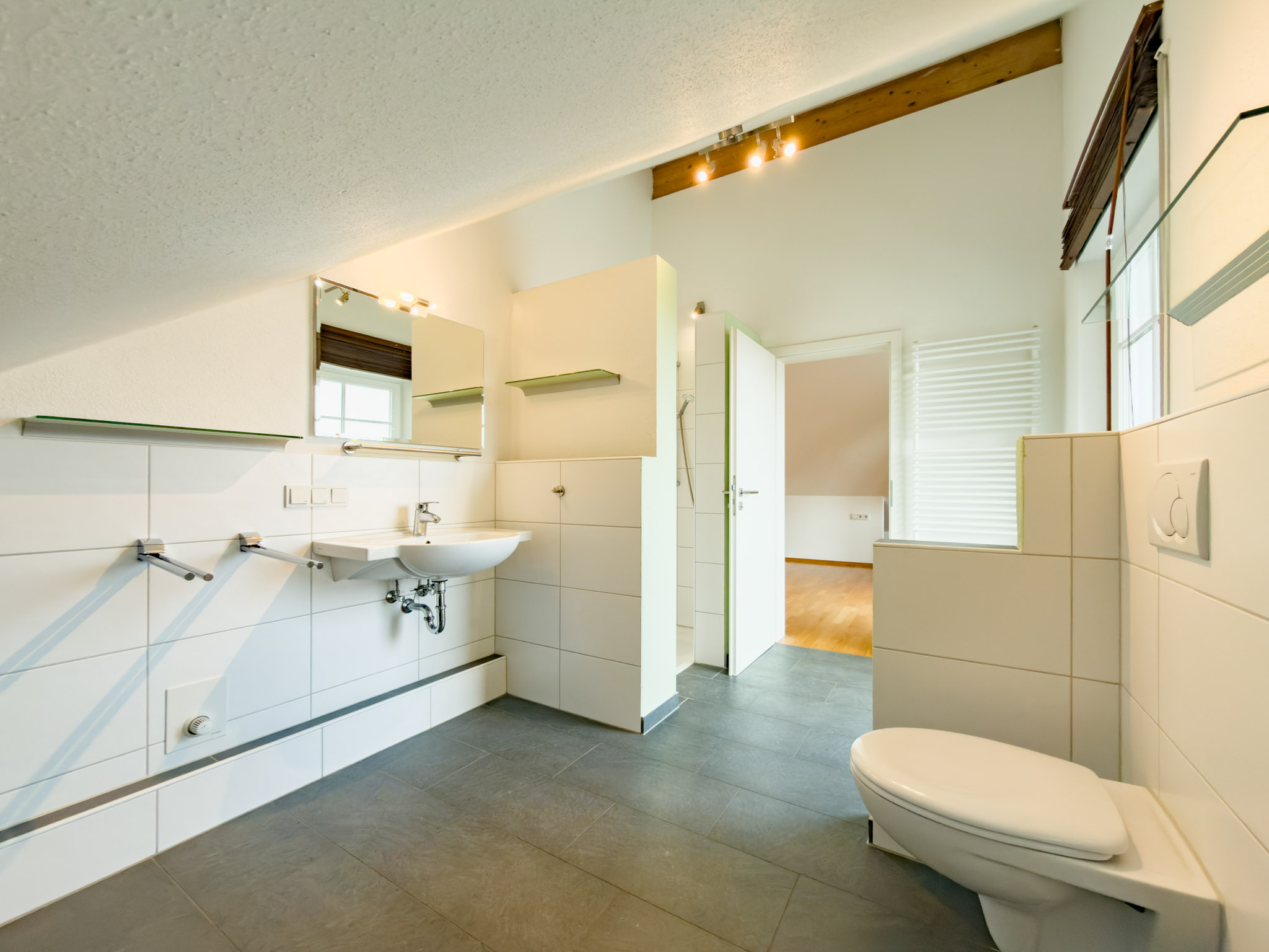 – eigenes Tageslichtbad mit Dusche, Waschbecken und WC