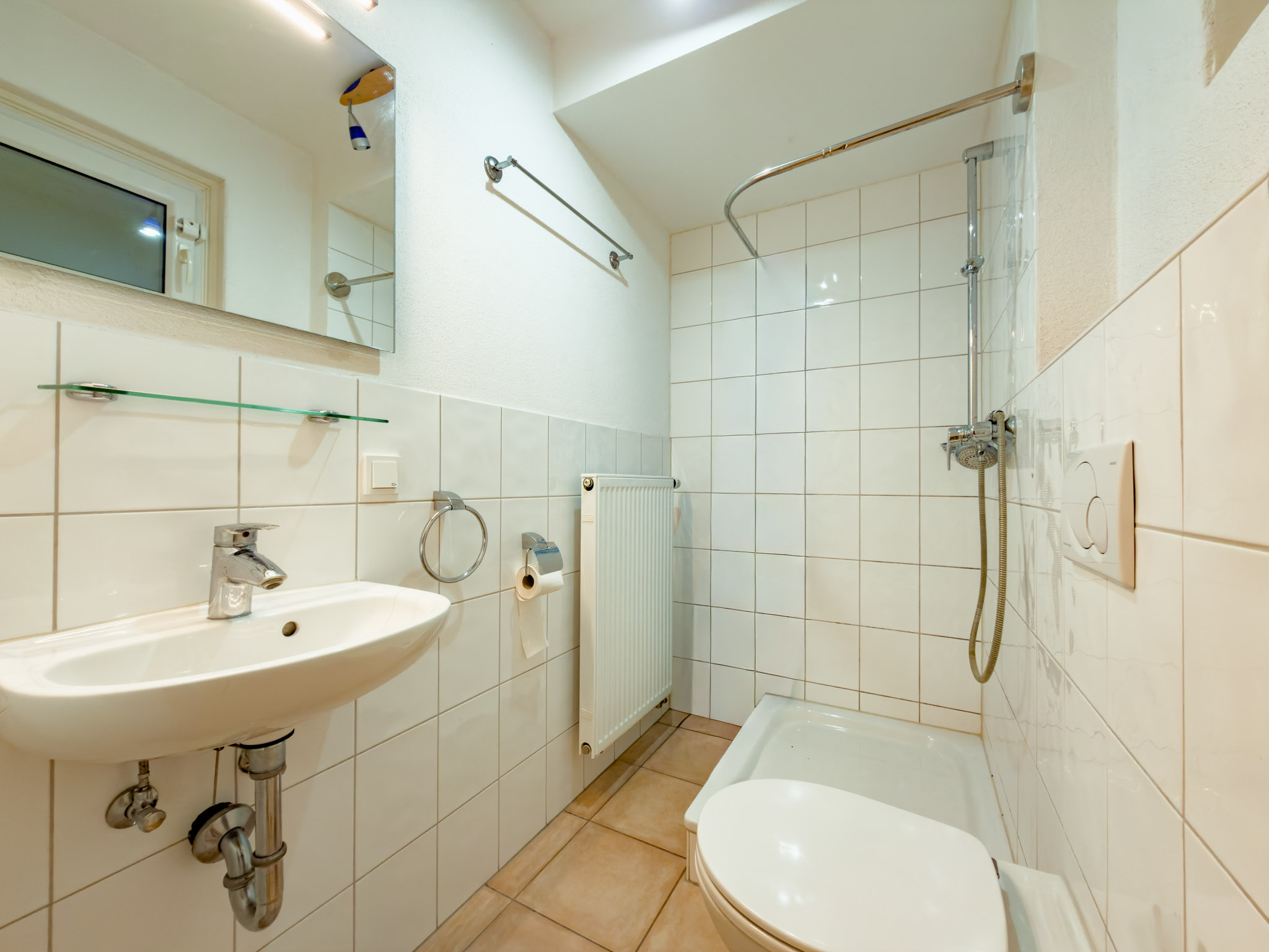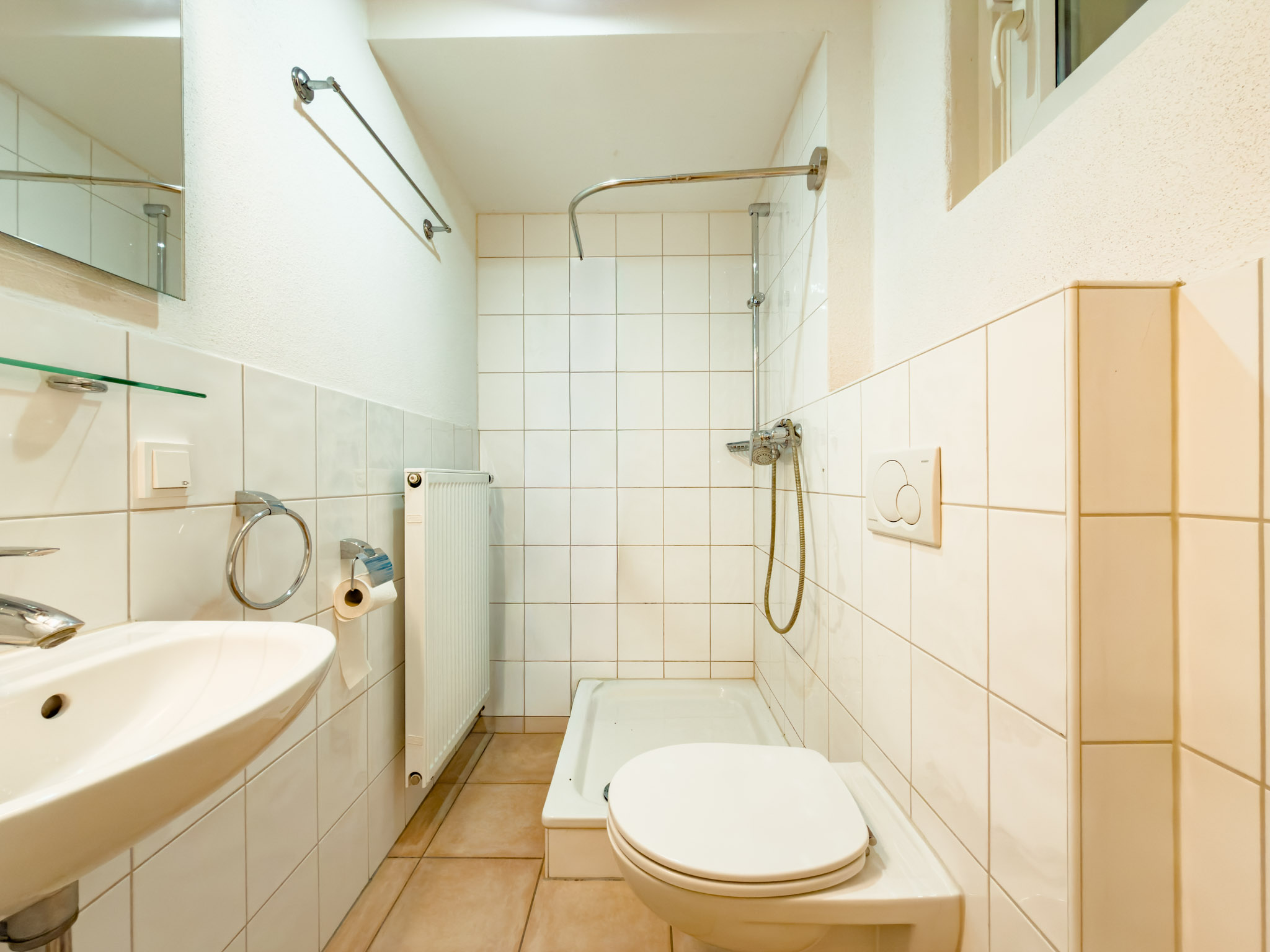 - Badausstattung: Dusche, Badewanne, Fenster
