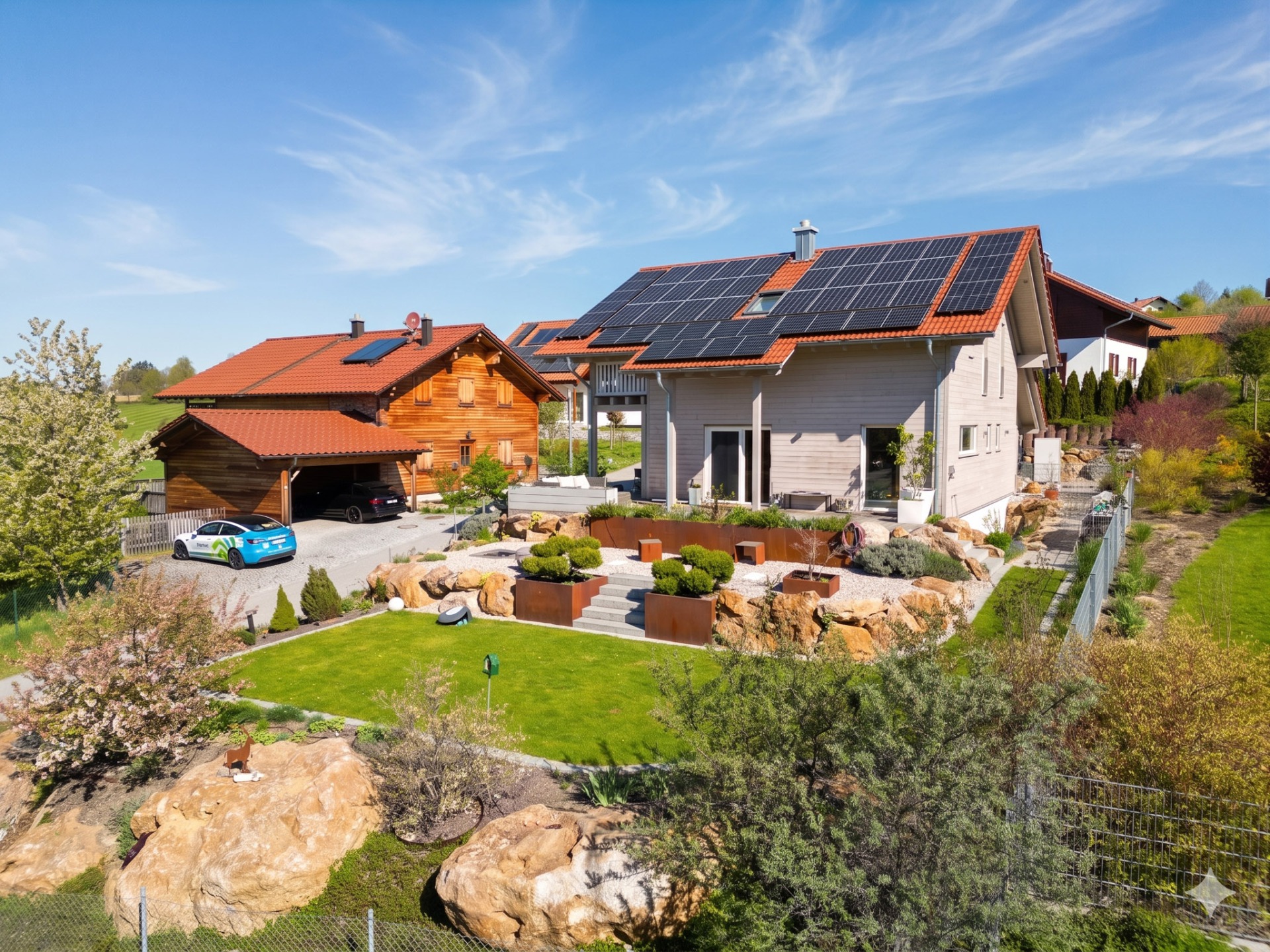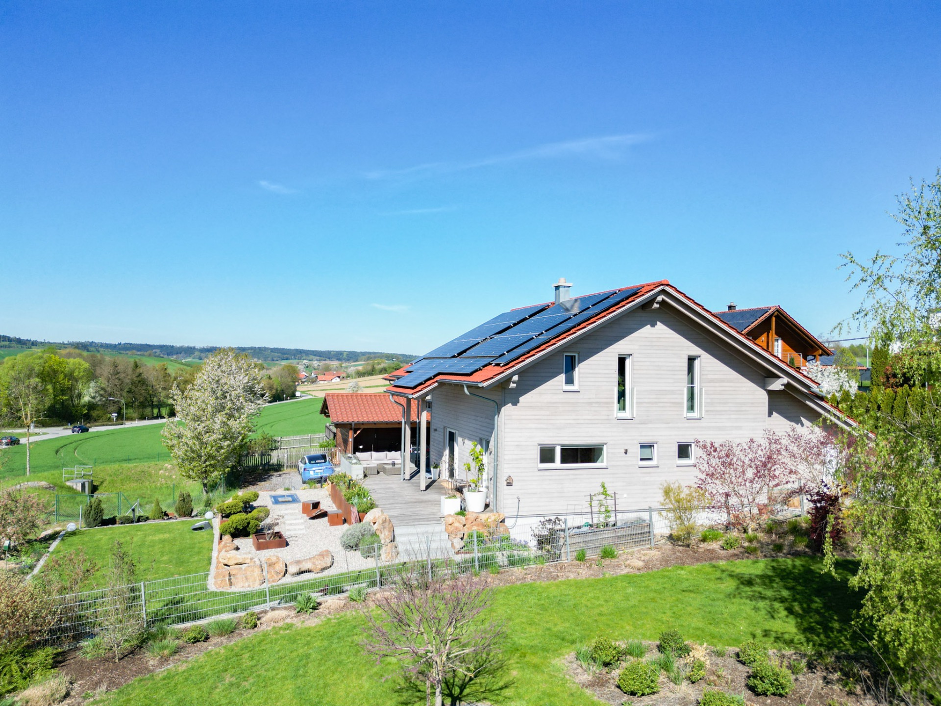 Dieses Haus ist kein Kompromiss. Es ist ein Zuhause für Menschen, die spüren möchten, dass sie angekommen sind. Hochwertig gebaut, ökologisch durchdacht und mit einem Wohngefühl, das man nicht in jeder Immobilie findet. Das Sonnleitner-Holzhaus aus Ortenburg wurde 2019 errichtet und verbindet modernen Holzbau, starke Energieeffizienz und einen Hauch von Luxus auf eine angenehm unaufgeregte Art. Nicht laut. Nicht überladen. Sondern stilvoll, warm und sehr hochwertig.