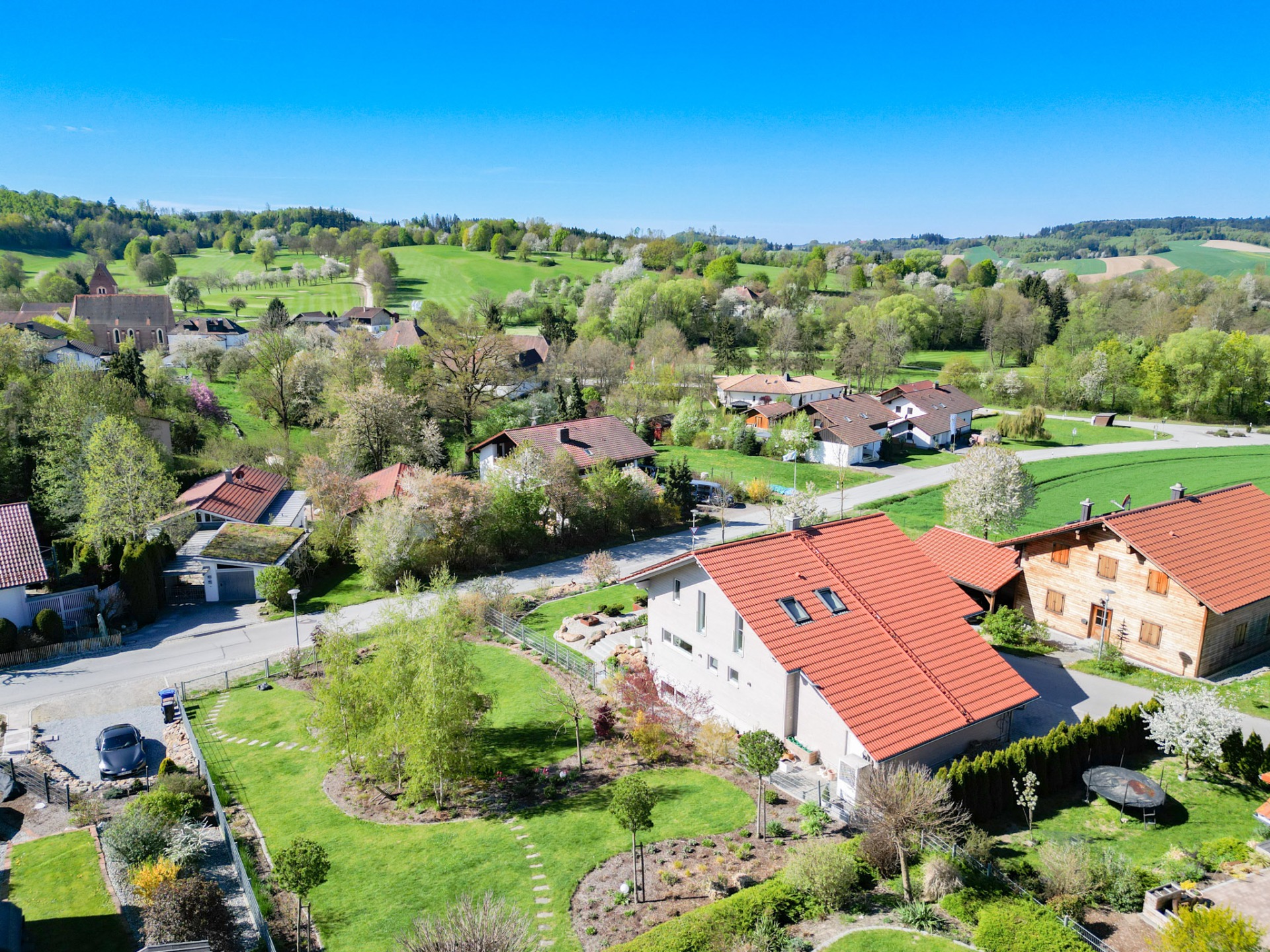 Haarbach liegt in einer Region, in der Golf mehr ist als ein Hobby. Die Nähe zu Bad Griesbach mit seinen bekannten Golfanlagen macht dieses Zuhause zu einem idealen Rückzugsort für alle, die nach der Runde nicht noch lange unterwegs sein möchten. Golfschläger verstauen, Schuhe ausziehen, auf die Süd-West-Terrasse setzen und den Tag mit Blick in den hochwertig angelegten Garten ausklingen lassen – genau dafür fühlt sich dieses Haus gemacht an. Hinter dem Carport befindet sich ein großzügiger Lagerraum mit außergewöhnlicher Innenhöhe und zwei Ebenen. Perfekt für Golfequipment, Fahrräder, Gartengeräte oder alles, was man gerne sauber und griffbereit unterbringt.