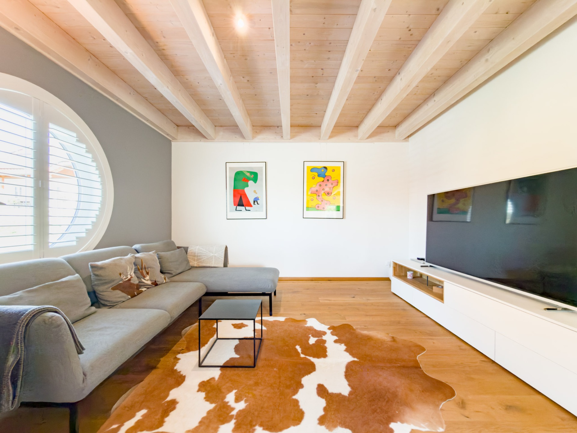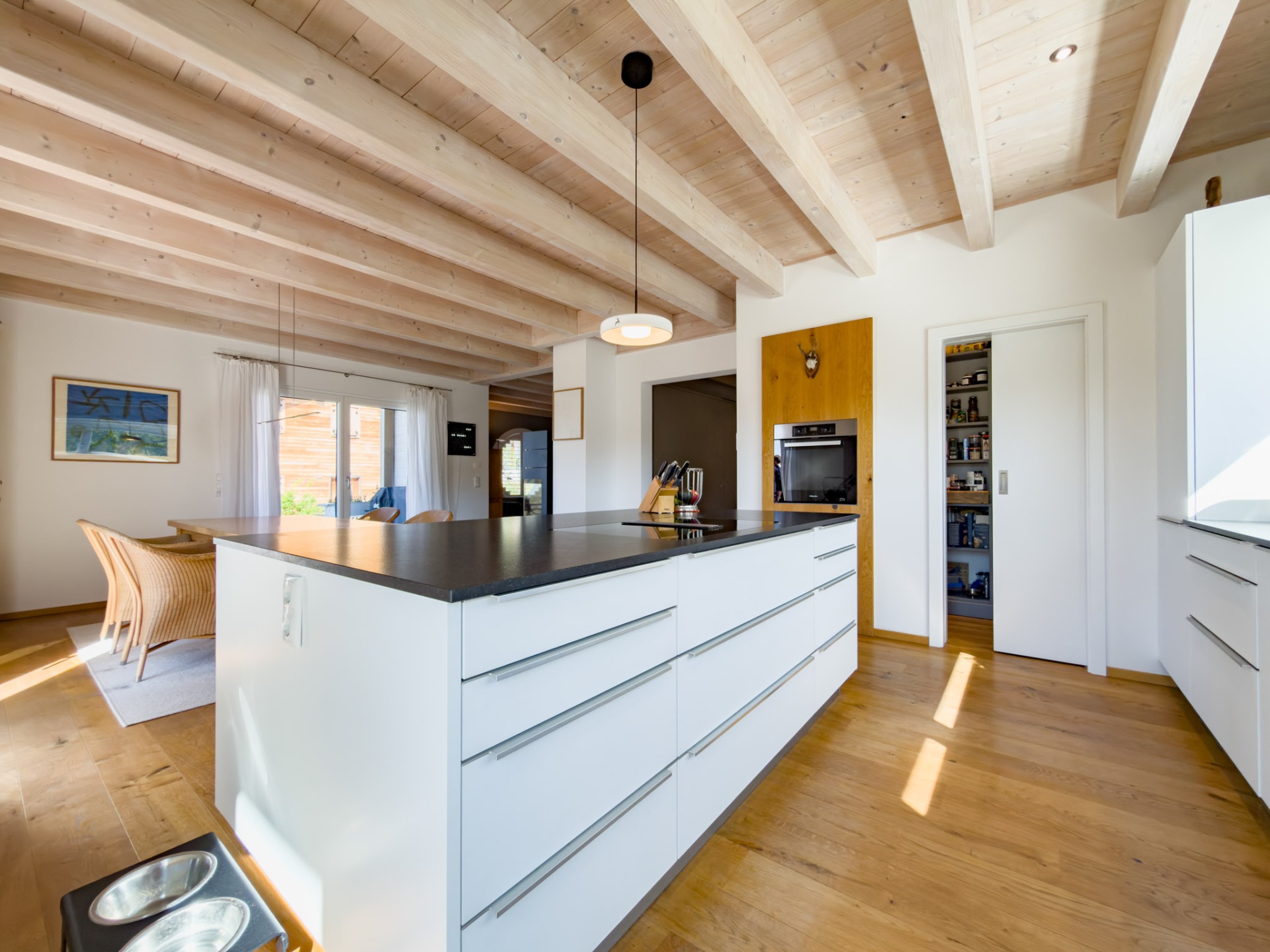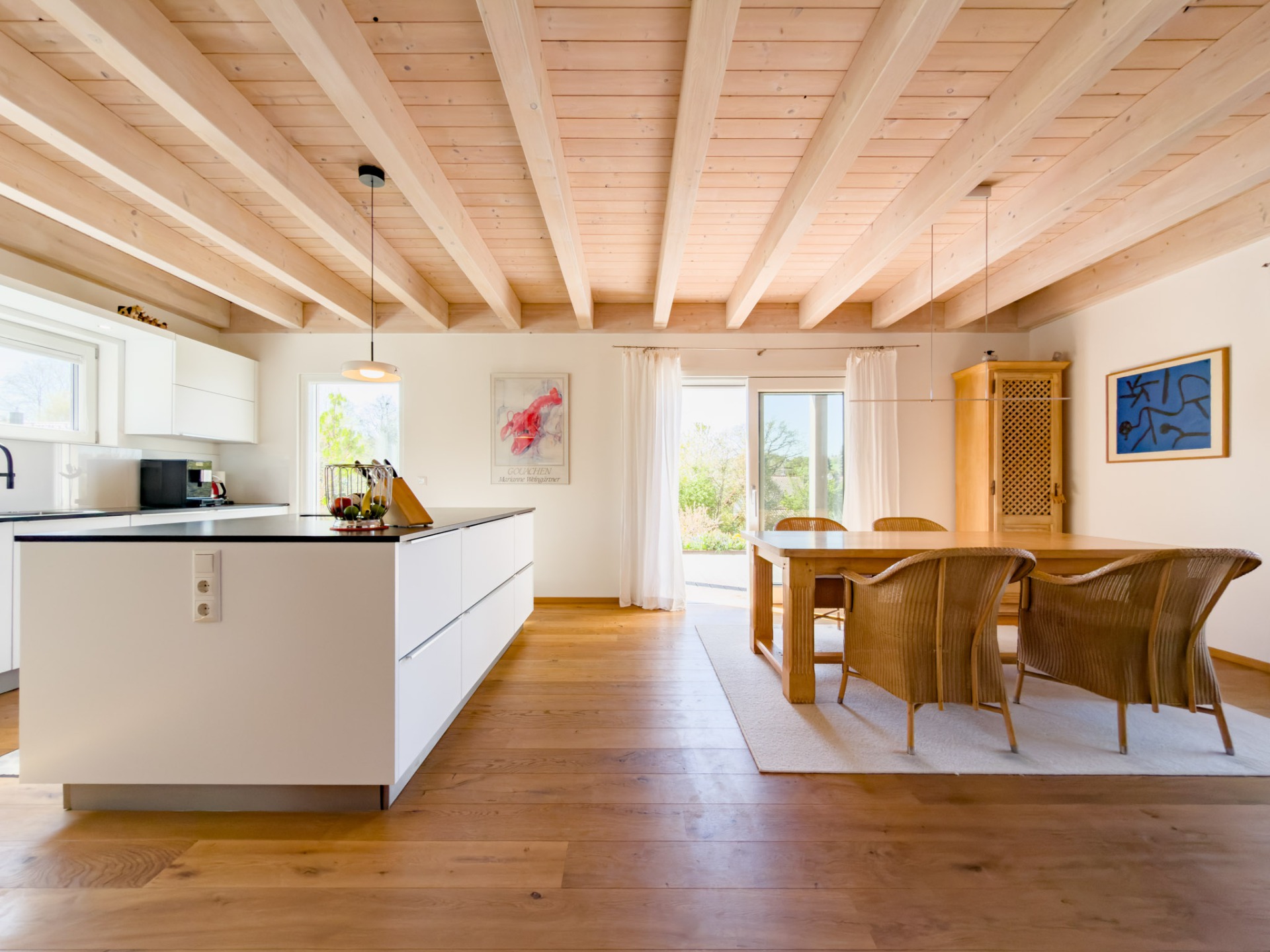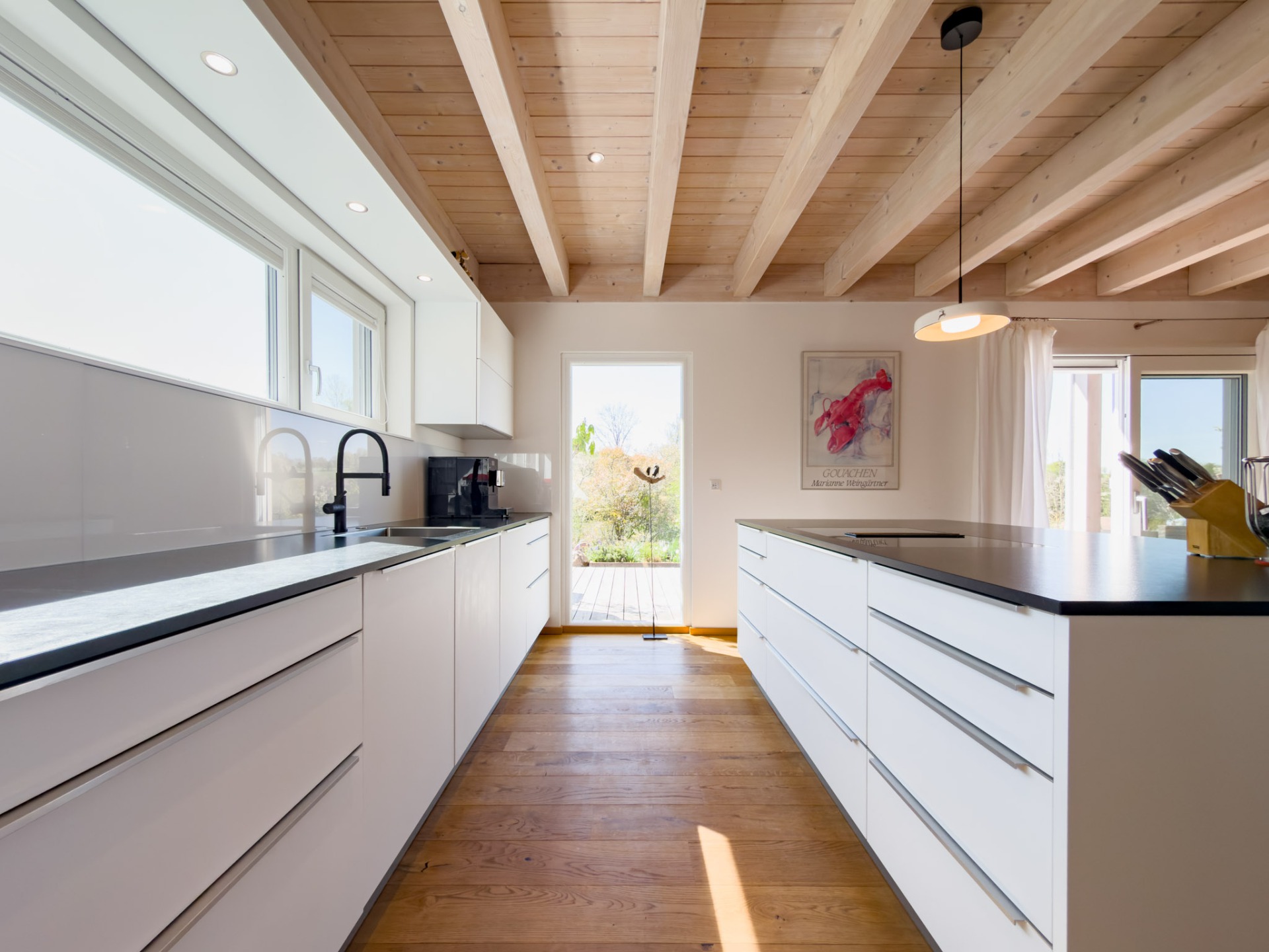 Gleichzeitig ist dieses Haus ein wunderbarer Ort für Familien, die Wert auf Qualität, Platz und ein gesundes Wohnumfeld legen. Die ökologische Holzbauweise schafft ein angenehmes Raumklima, die ca. 181 m² Wohnfläche bieten genügend Möglichkeiten für Familie, Gäste, Homeoffice oder Hobbys. Mit bis zu vier Schlafräumen, mehreren Wohnbereichen und einem flexibel nutzbaren Untergeschoss passt sich das Haus verschiedenen Lebensphasen an – heute Familie, morgen mehr Rückzug, später vielleicht Gäste- oder Arbeitsbereich.