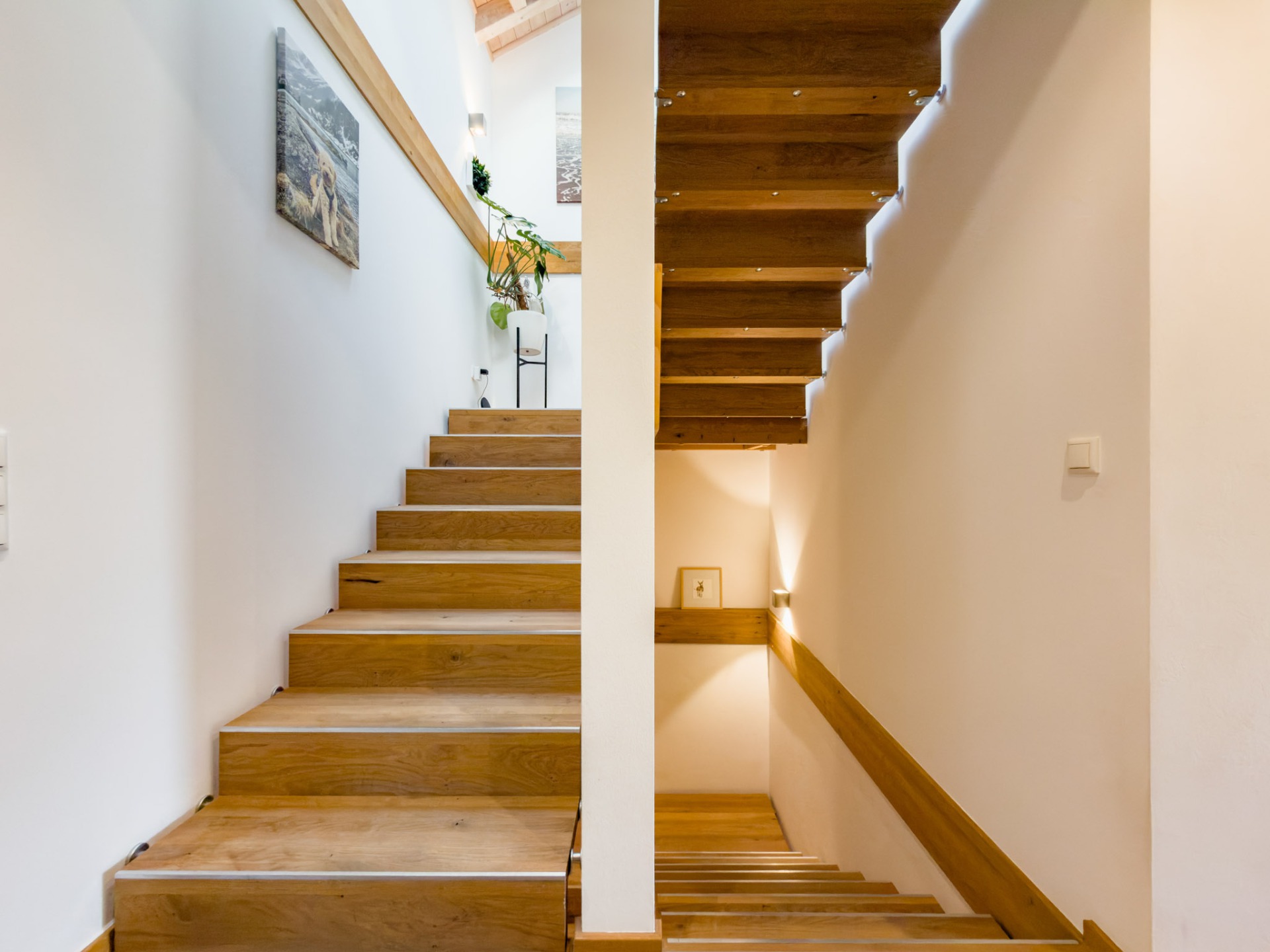 – hochwertige, aufgehängte Treppe mit Eichenholz-Treppenstufen