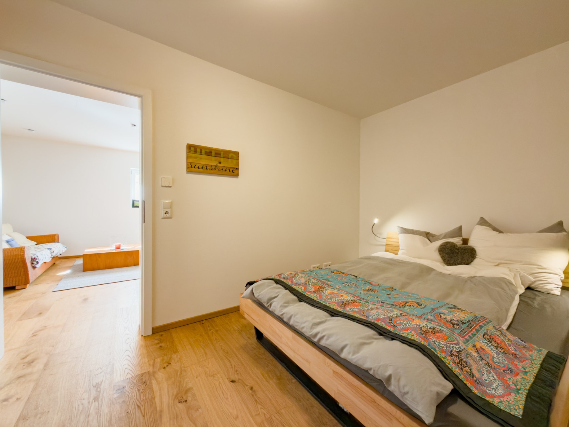– gemütliches Schlafzimmer mit separatem Ankleideraum und Zugang zum überdachten Balkon