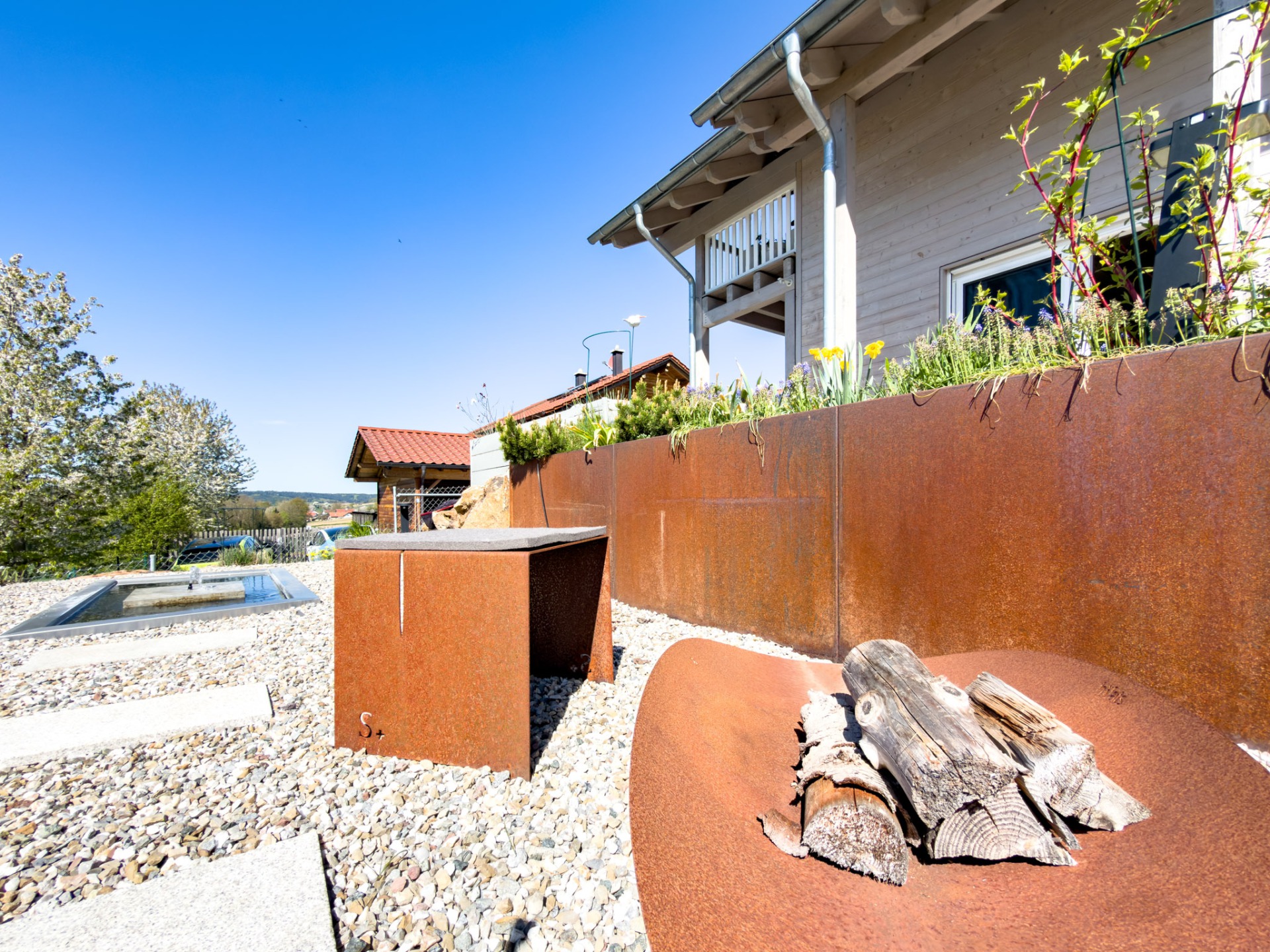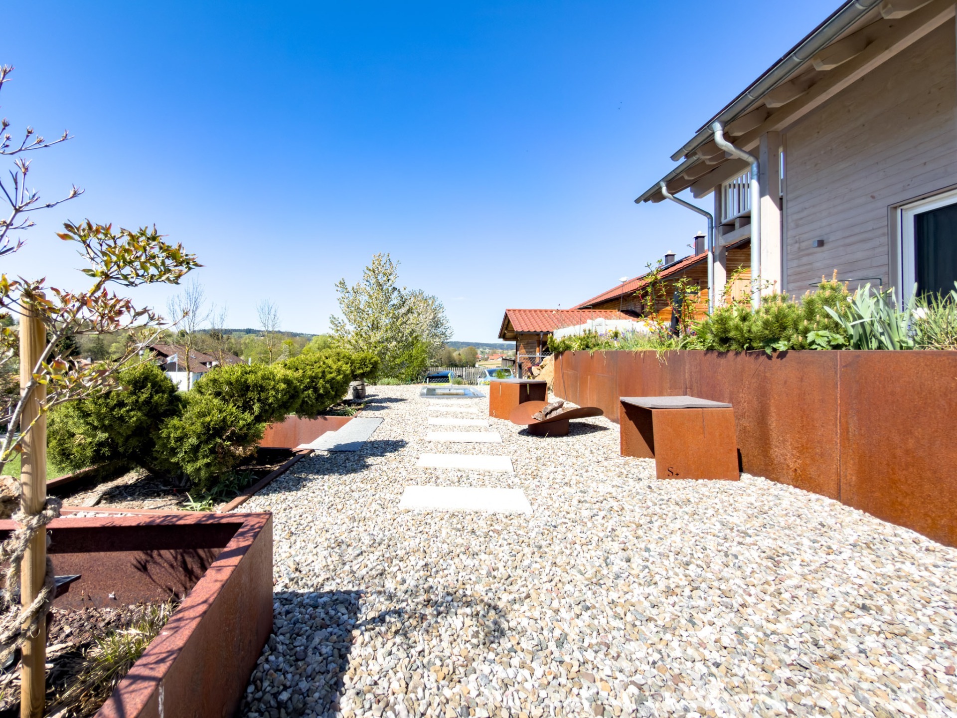 – hochwertig und aufwändig angelegte Design-Gartenanlage mit Naturstein und Cortenstahl