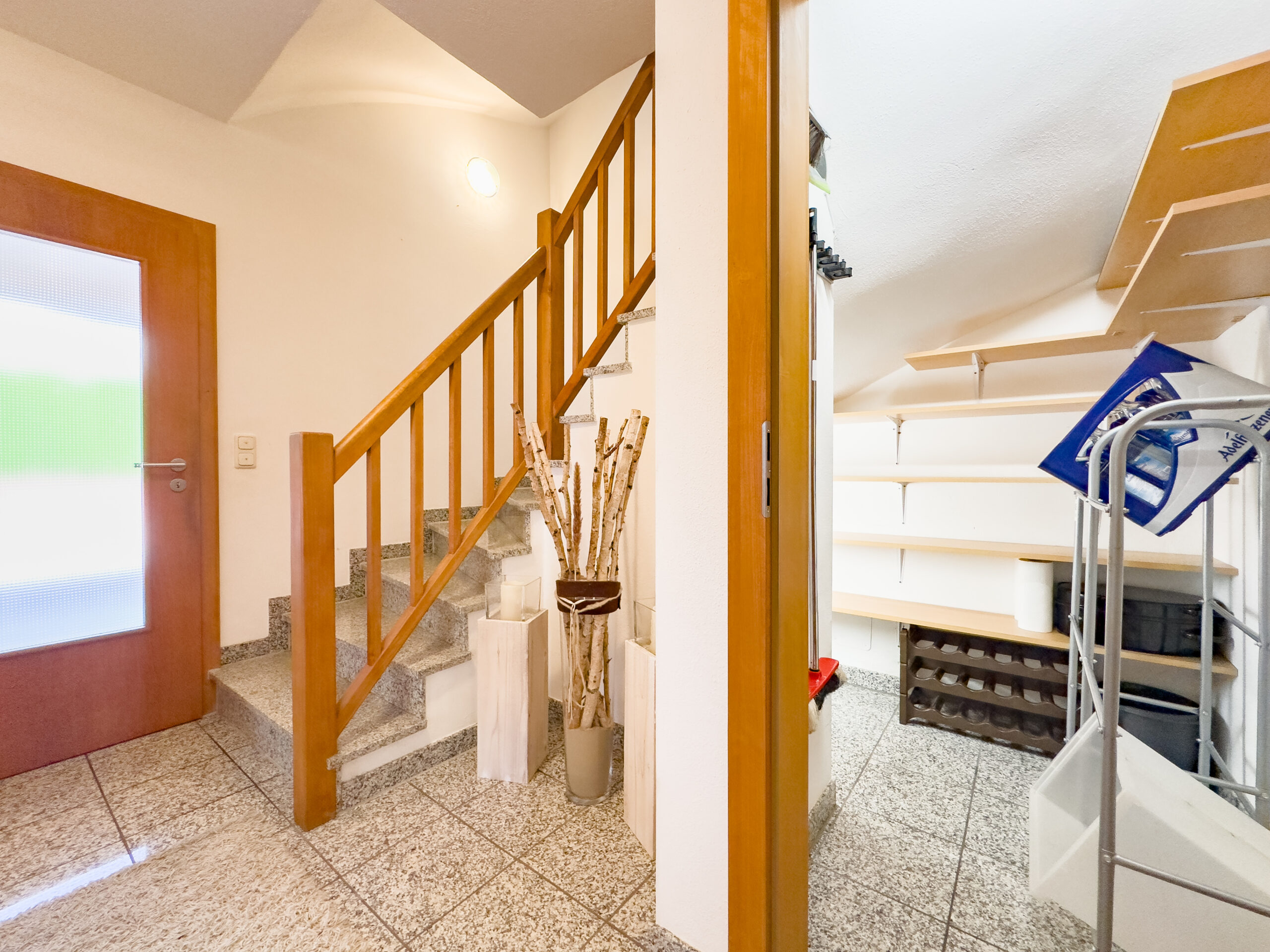 – Flurbereich mit Zugang zum OG, Wohn-Essbereich und Abstellraum unterhalb der Treppe