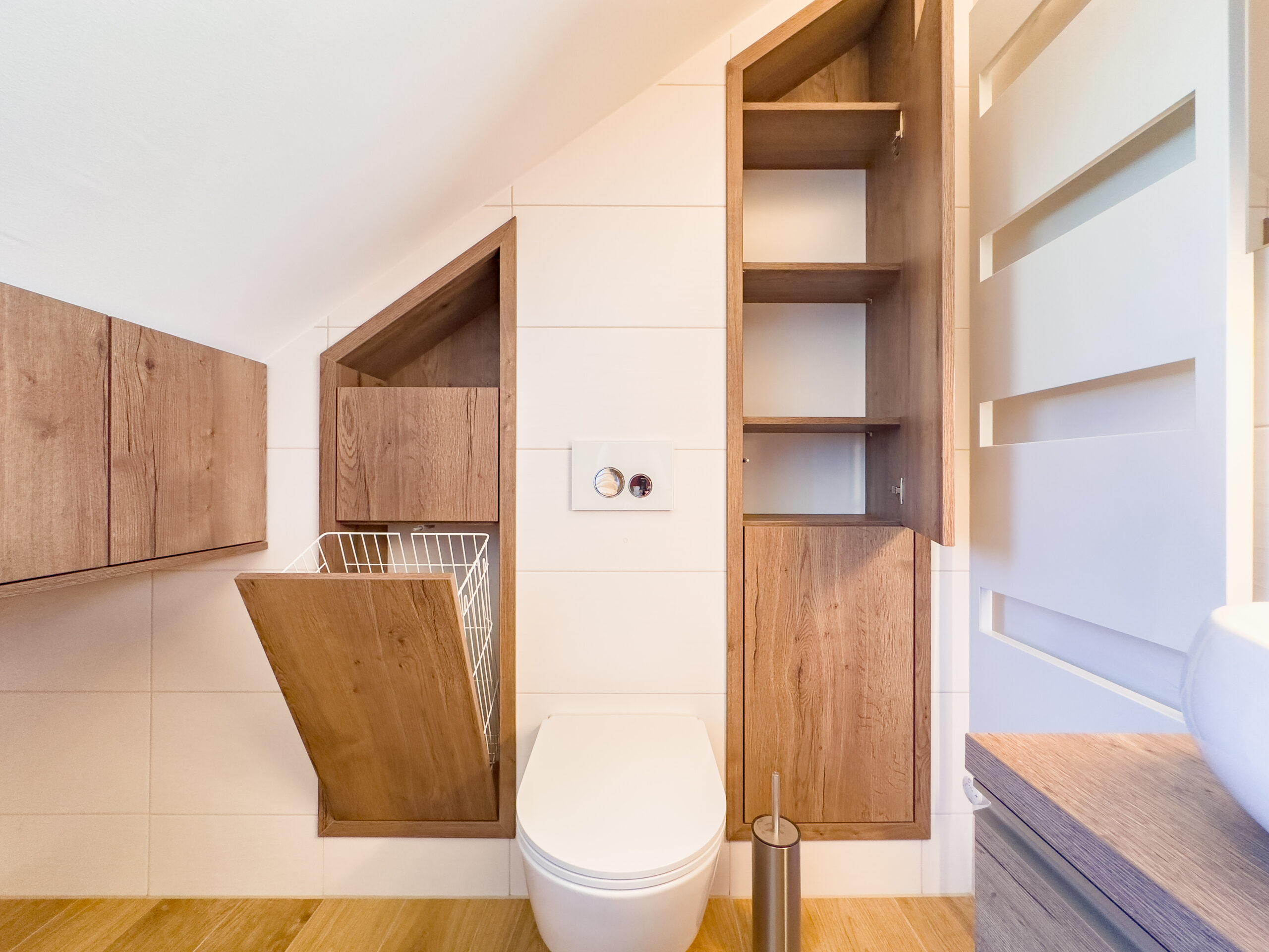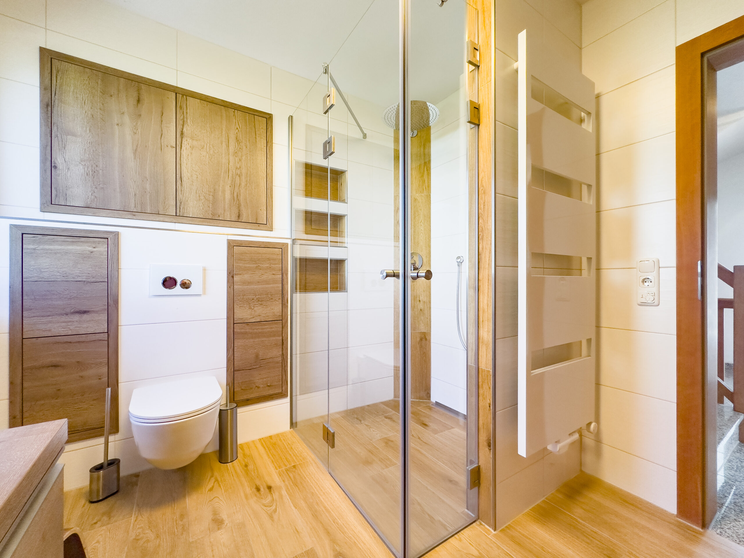 – Holzoptikfliesen in den Bädern