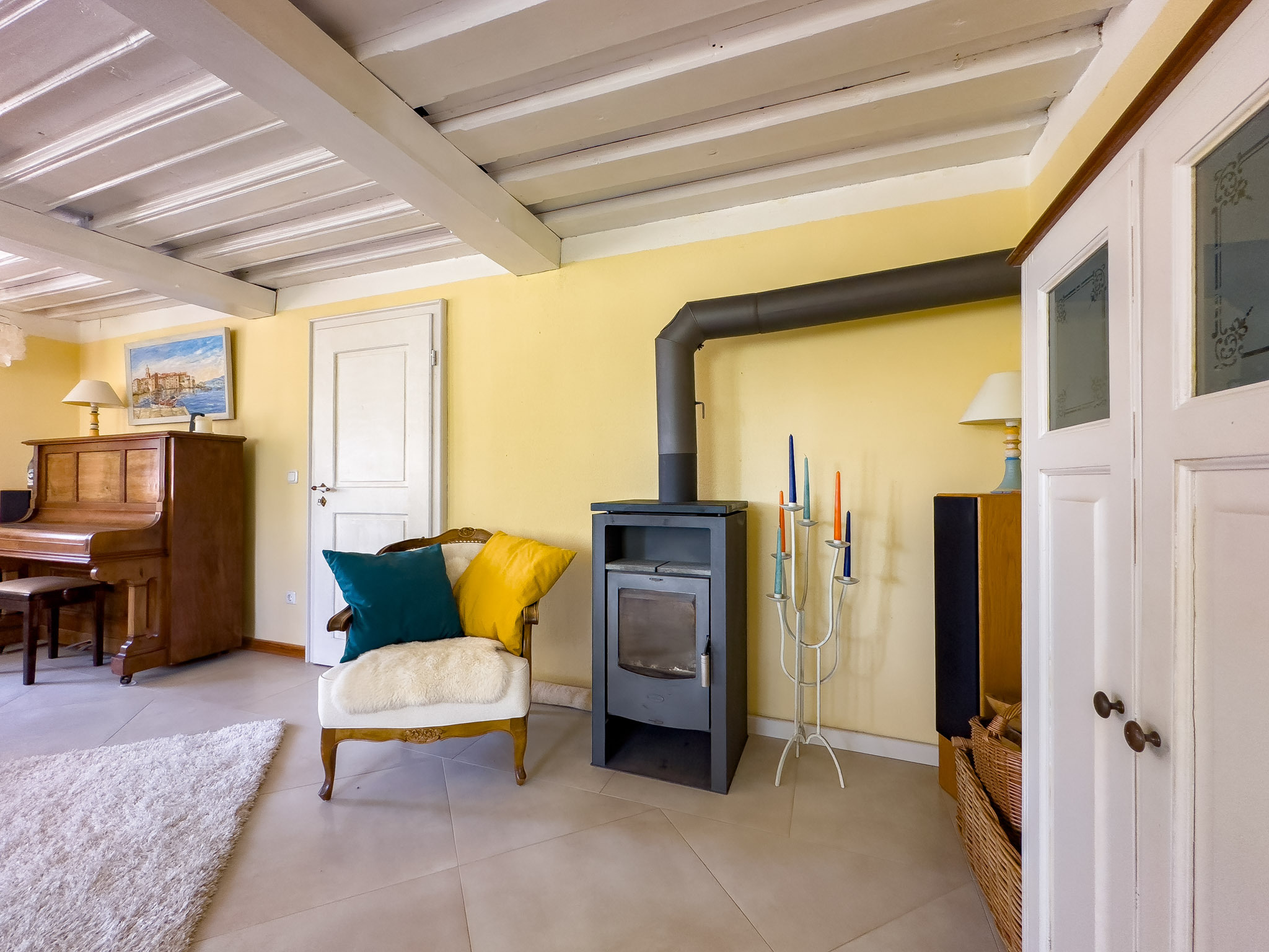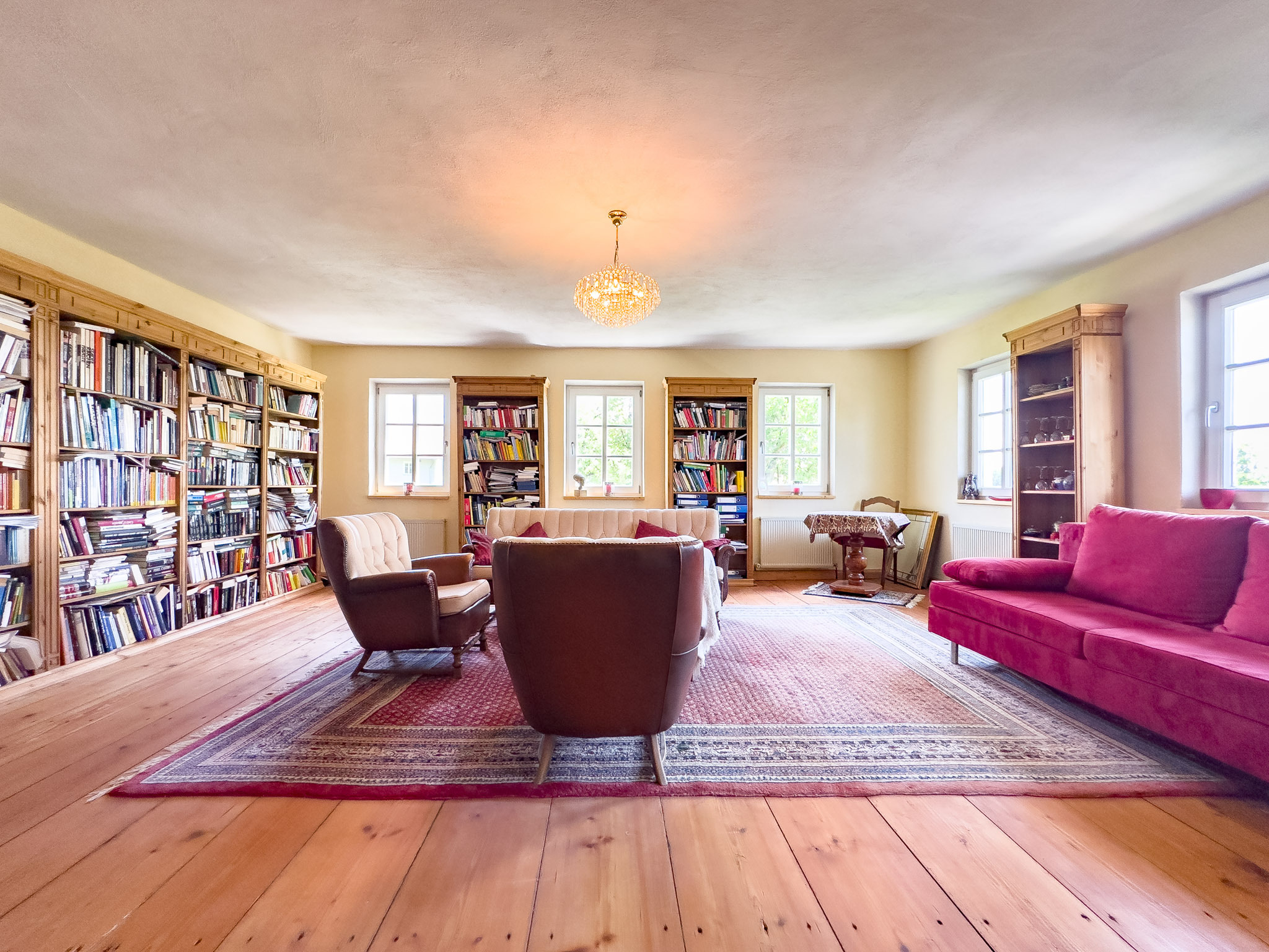 – wunderschöner, gemütlicher Raum der aktuell als Bibliothek genutzt wird und einen Ausblick Richtung Süd-Osten ermöglicht. Die Wärmezufuhr aus dem im EG befindlichen Kamin ist über einen Wärmeschacht gewährleistet
