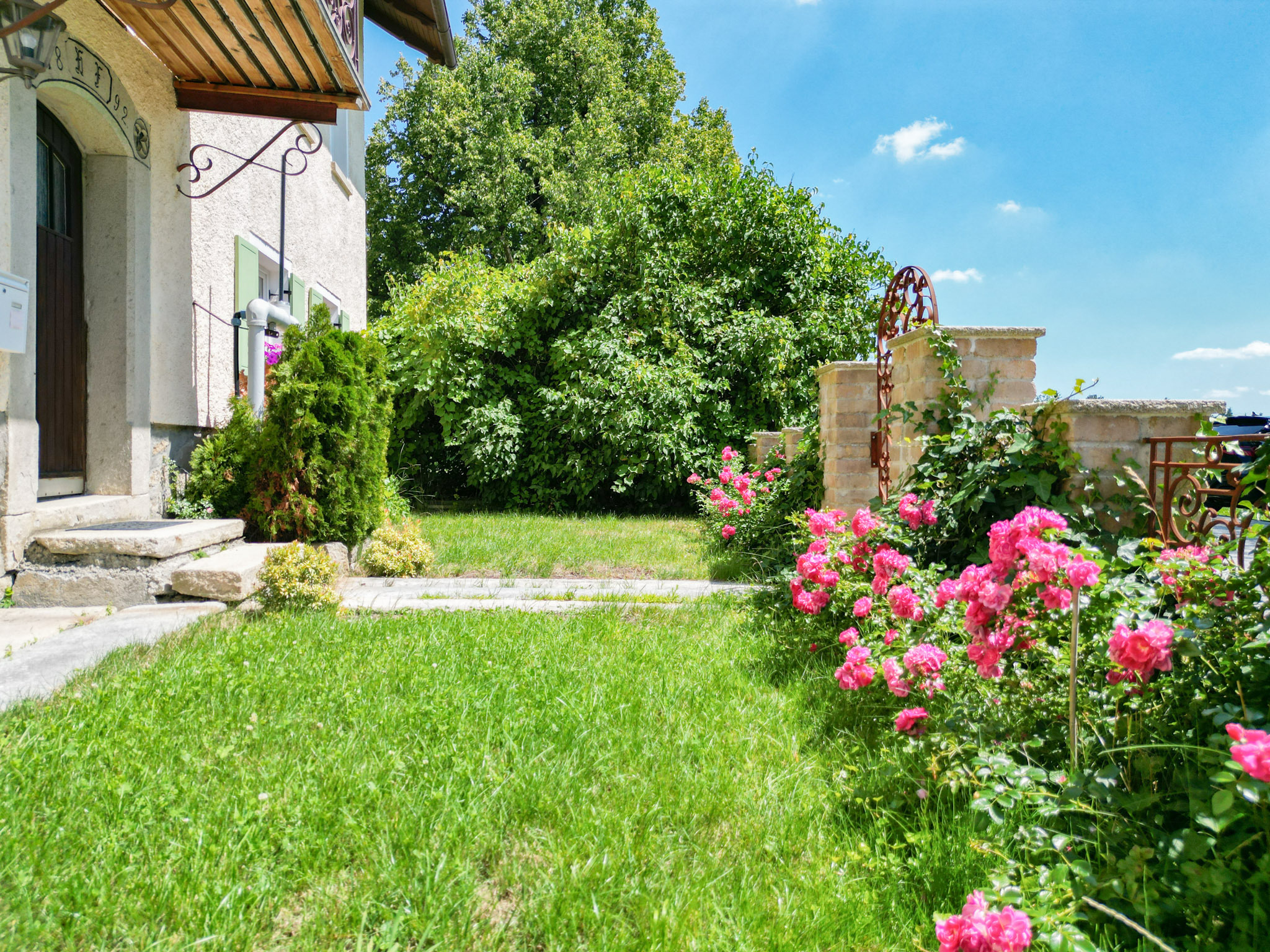– umfangreicher Baum- und Sträucherbestand: Kirsche, Apfel, Birne, Holunder, Walnuss, Haselnuss, sowie Flieder und Wildrosen