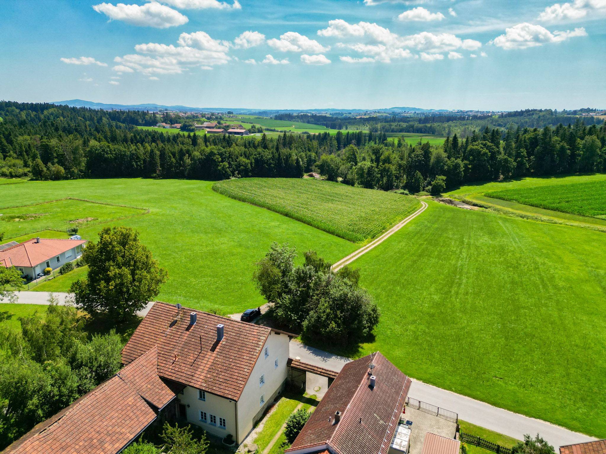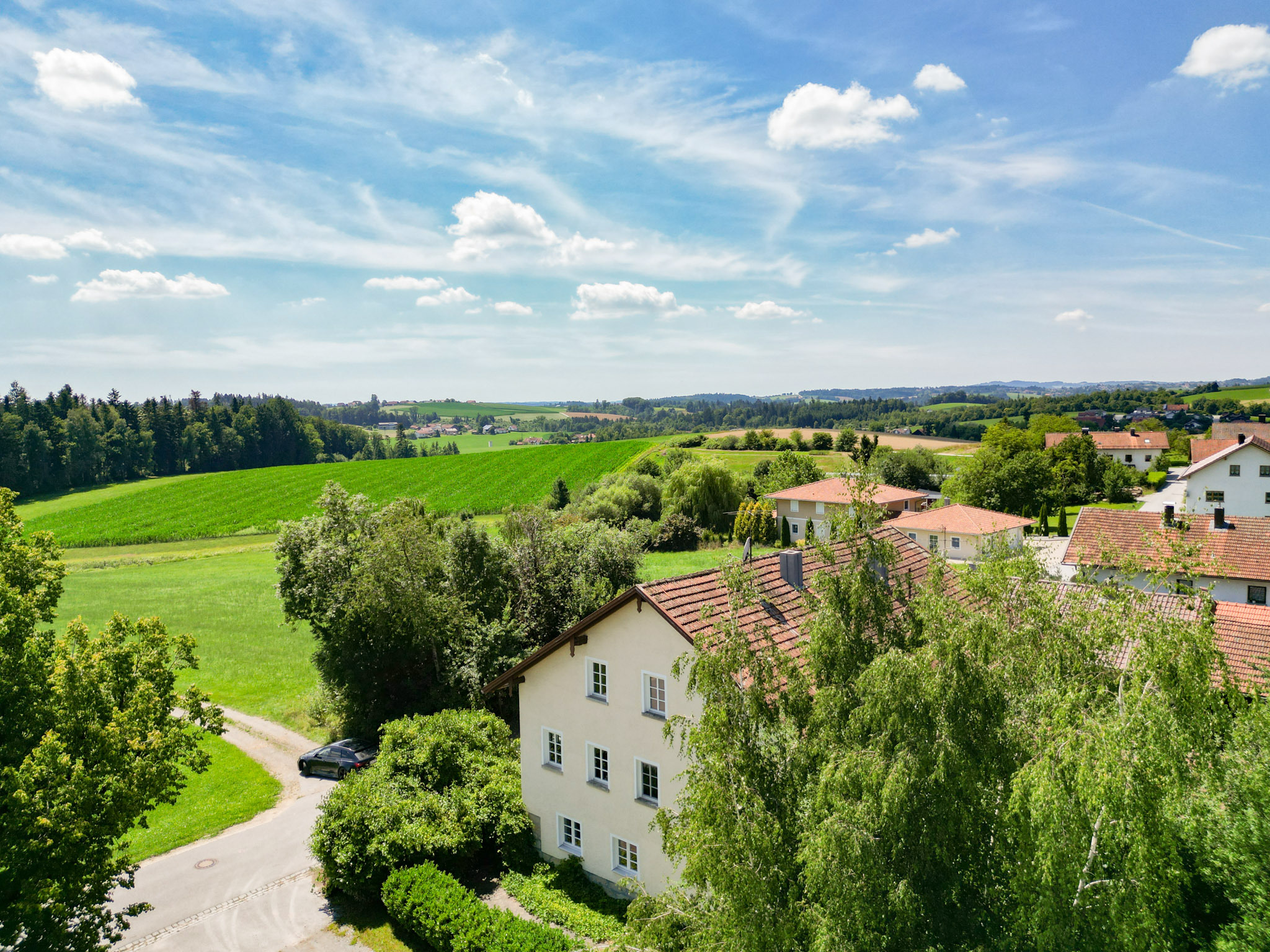 Versteckt in einer sanften Hügellandschaft zwischen Büchlberg und Salzweg liegt dieser Dreiseithof in einem kleinen Ortsteil, eingebettet in Wiesen, Wälder und weitläufige Natur. Ein Platz, der Ruhe schenkt – und dennoch überraschend gut angebunden ist. Wer hier wohnt, erlebt jeden Tag das Beste aus zwei Welten: absolute Privatsphäre und gleichzeitig kurze Wege zu allem, was das tägliche Leben braucht.