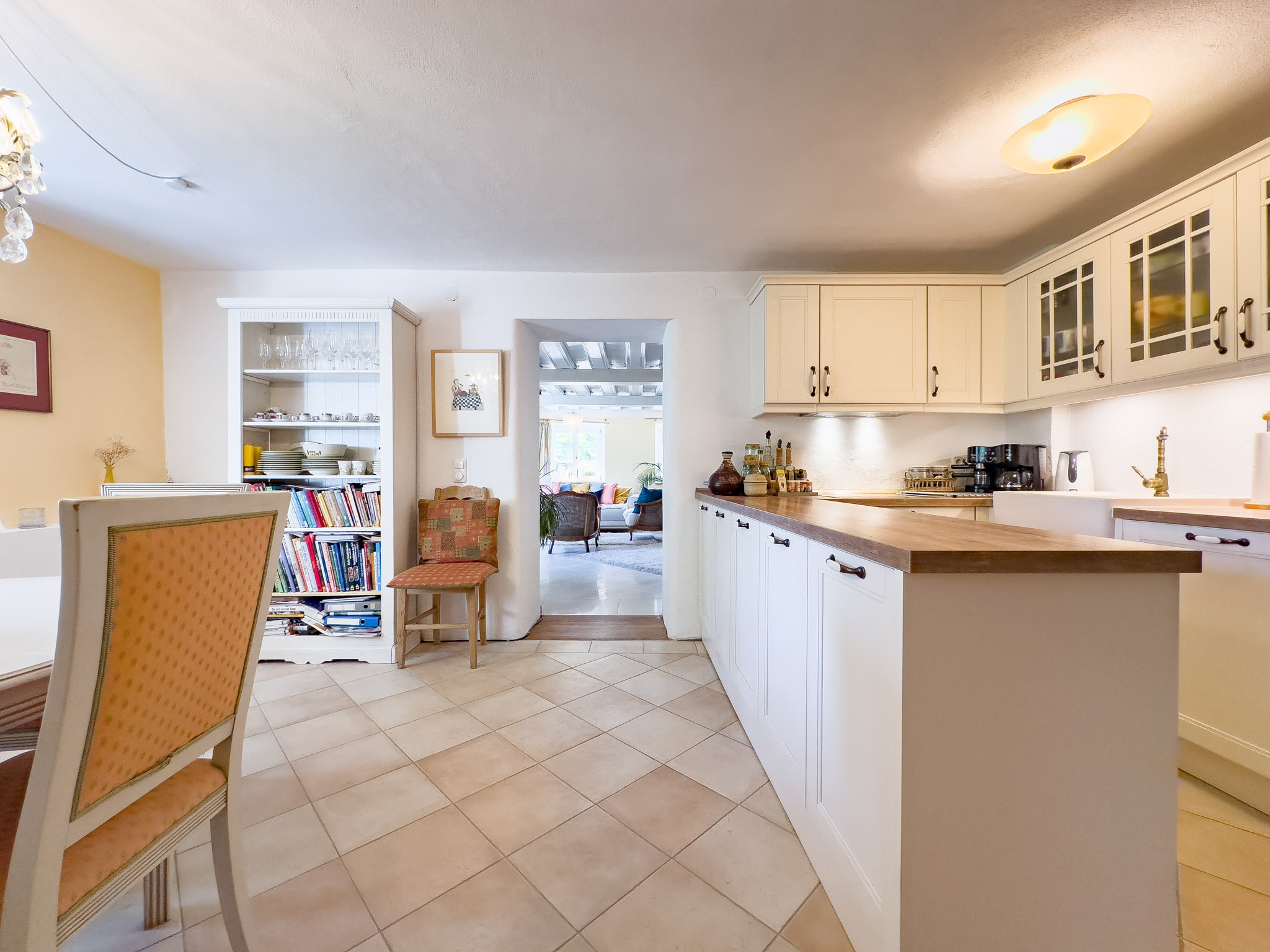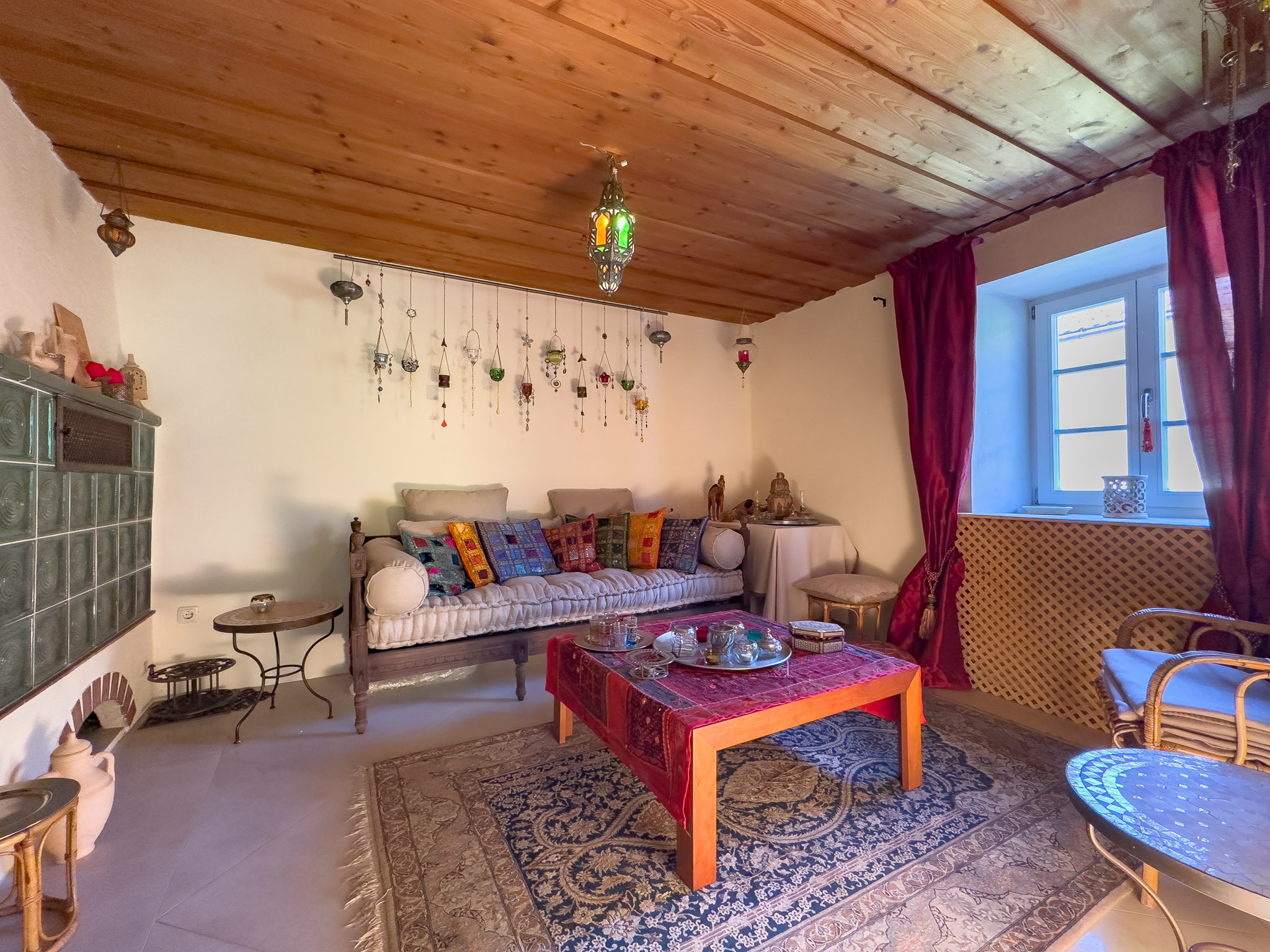 Das Herzstück bildet das Wohnhaus mit rund 285 m² Wohnfläche. Die Raumaufteilung verbindet Weite mit Behaglichkeit. Mediterrane Akzente, liebevoll bewahrte Originaldetails und moderne Ausstattung schaffen eine Atmosphäre, die Wärme und Geborgenheit ausstrahlt.