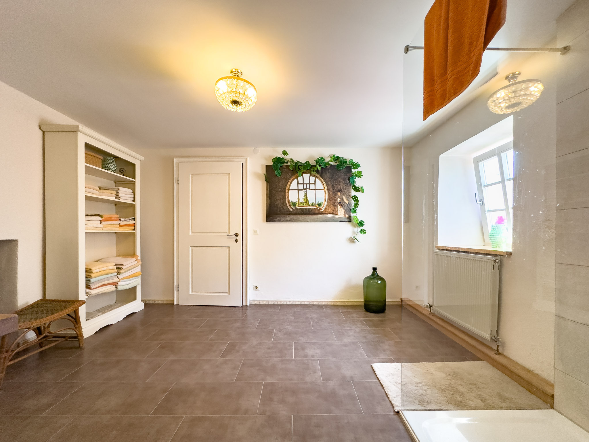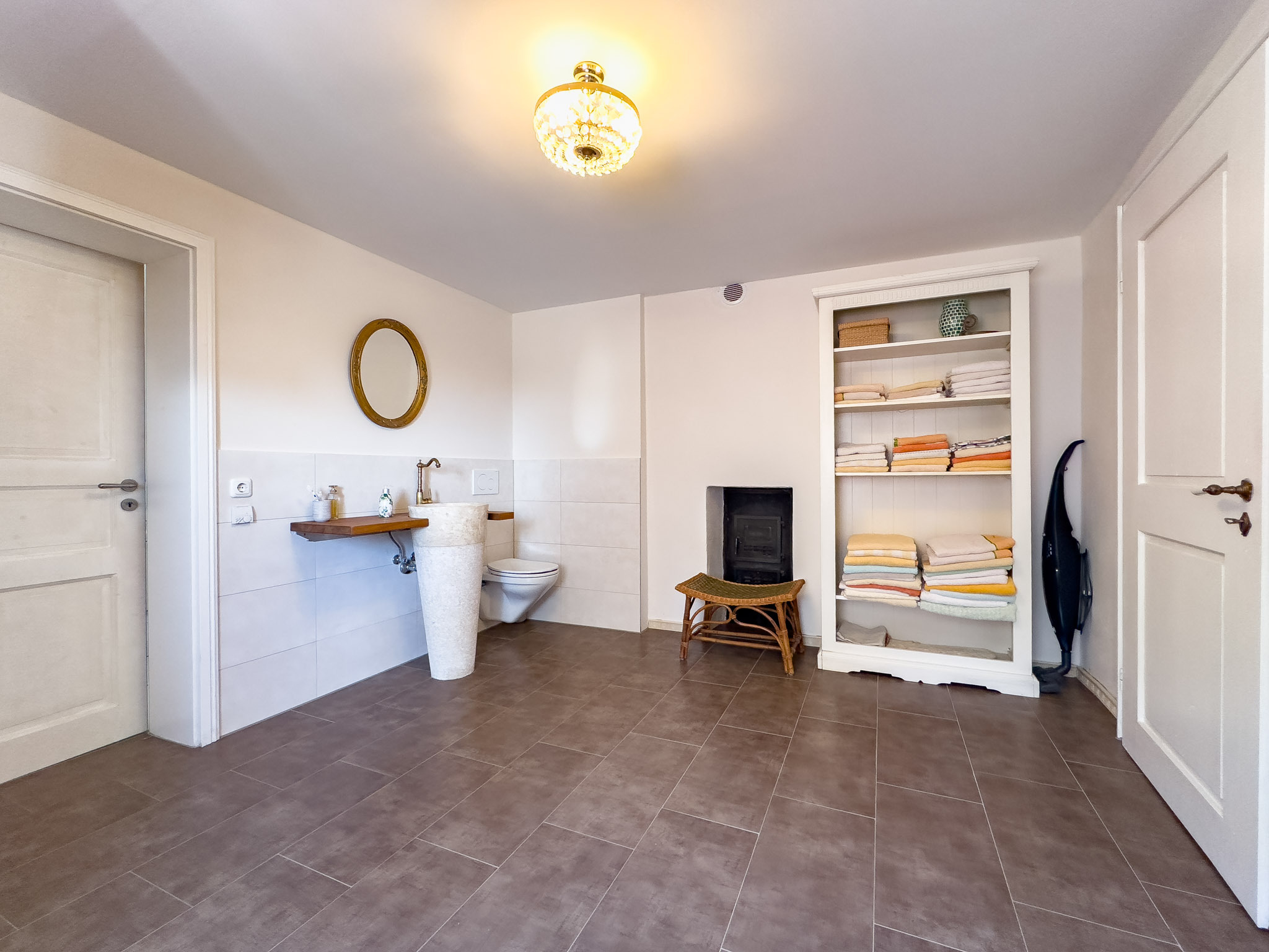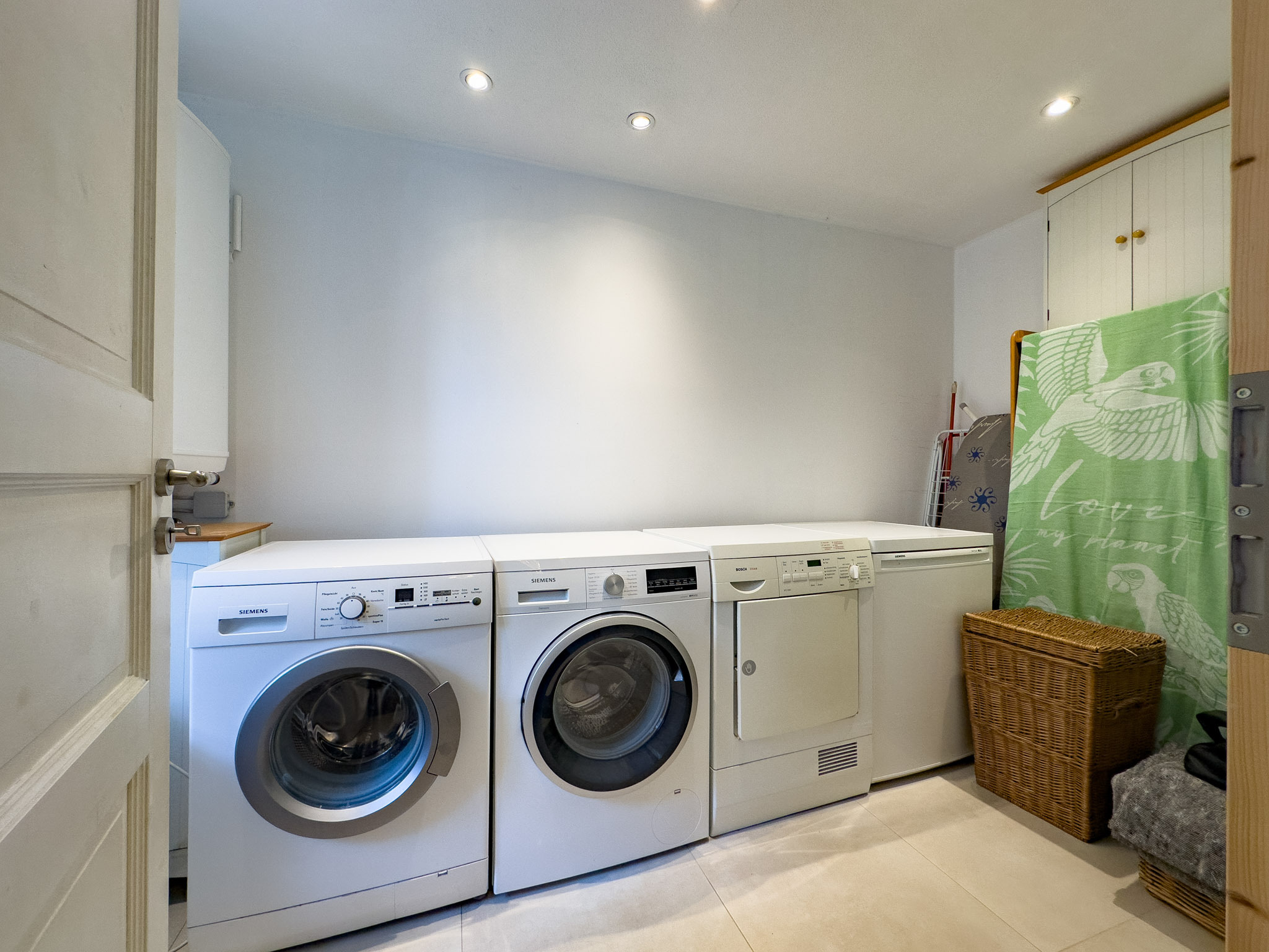 – am Bad angrenzend befindet sich ein praktischer Hauswirtschaftsraum, ausgestattet mit LED-Spots und liebe zum Detail – alte Fliesen des Hauses wurden hier erhalten. Mit genügend Platz für zwei Waschmaschinen, Trockner, ein separates Waschbecken und eine Gefriertruhe