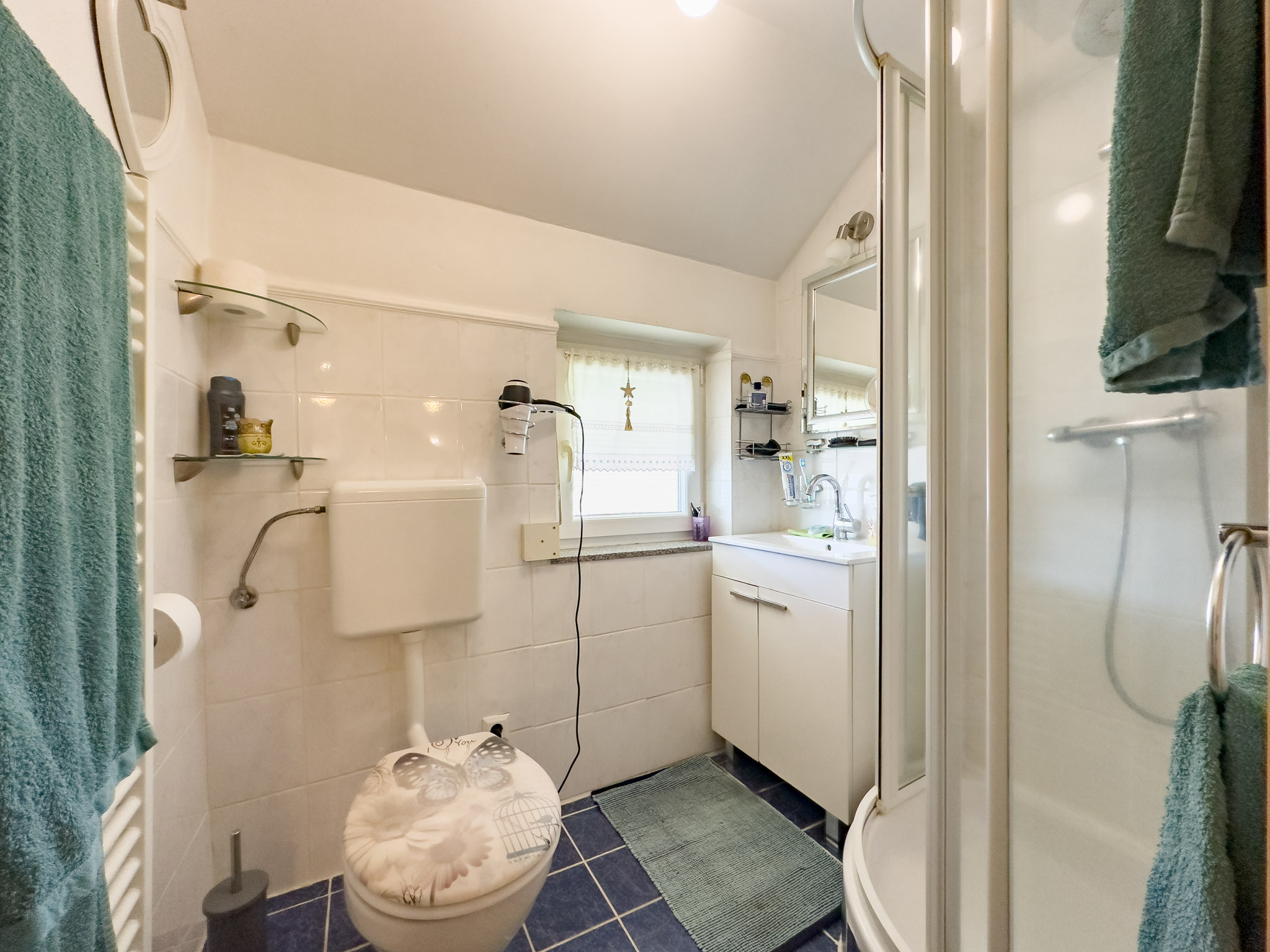 – praktisches Gästezimmer mit eigenem Bad en Suite inkl. Badewanne, Handtuchheizkörper und WC.