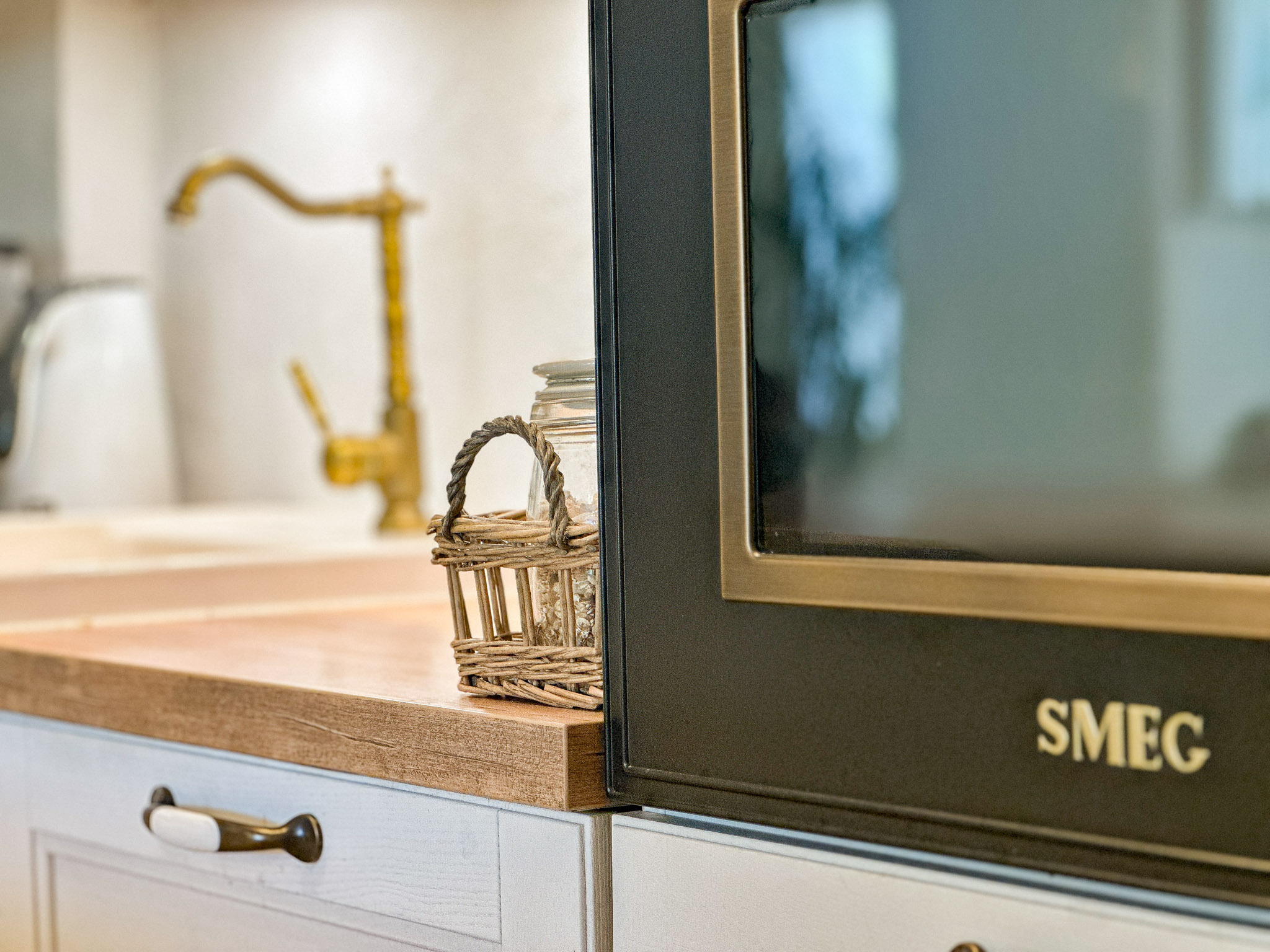 – wunderschöne Echtholz Landhausstilküche mit stilgerechtem SMEG Backofen, SIEMENS Küchengeräten und italienischen Bodenfliesen