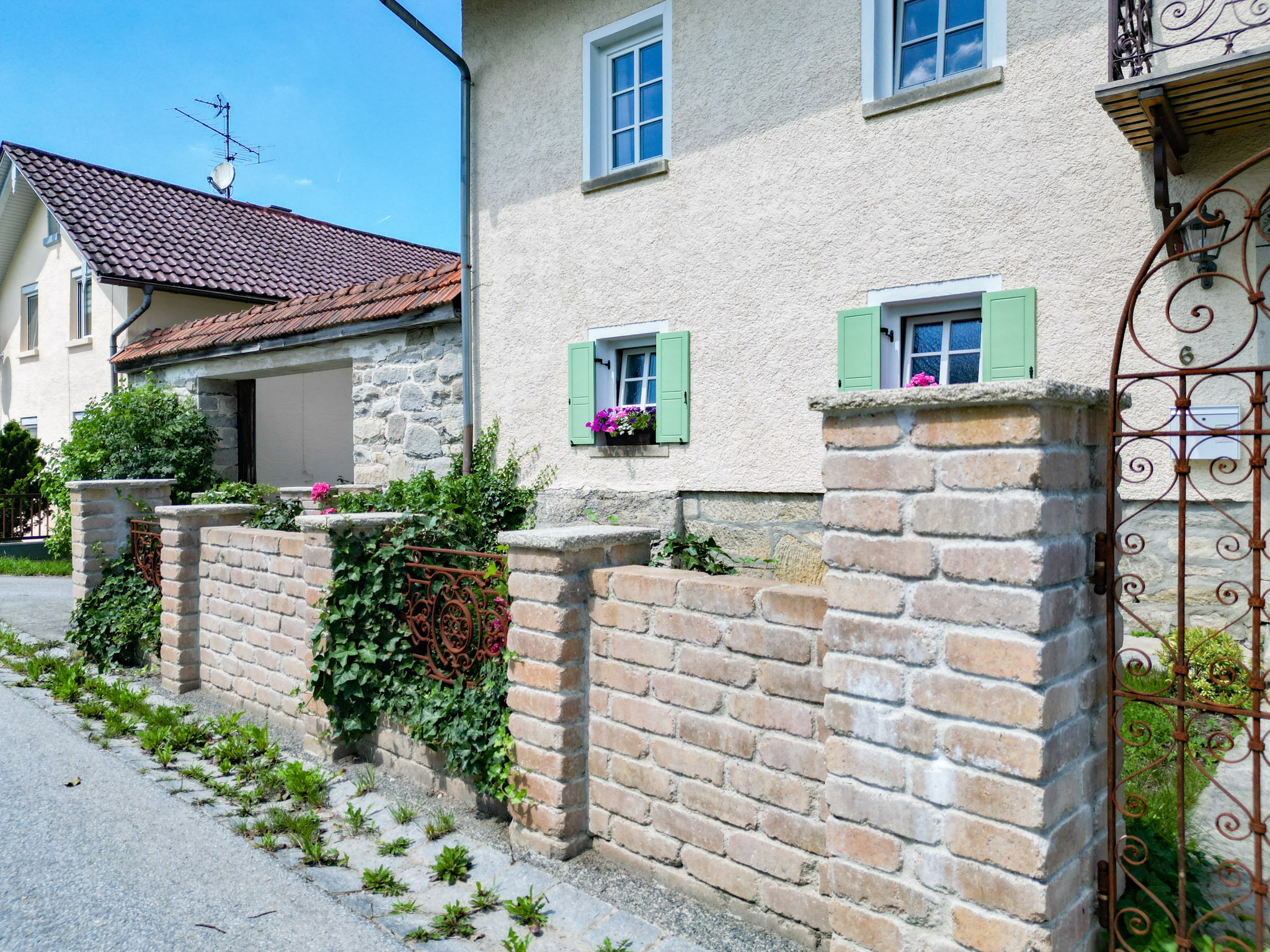 – Steinmauer vor dem Haus im Oktober 2021 neu errichtet
