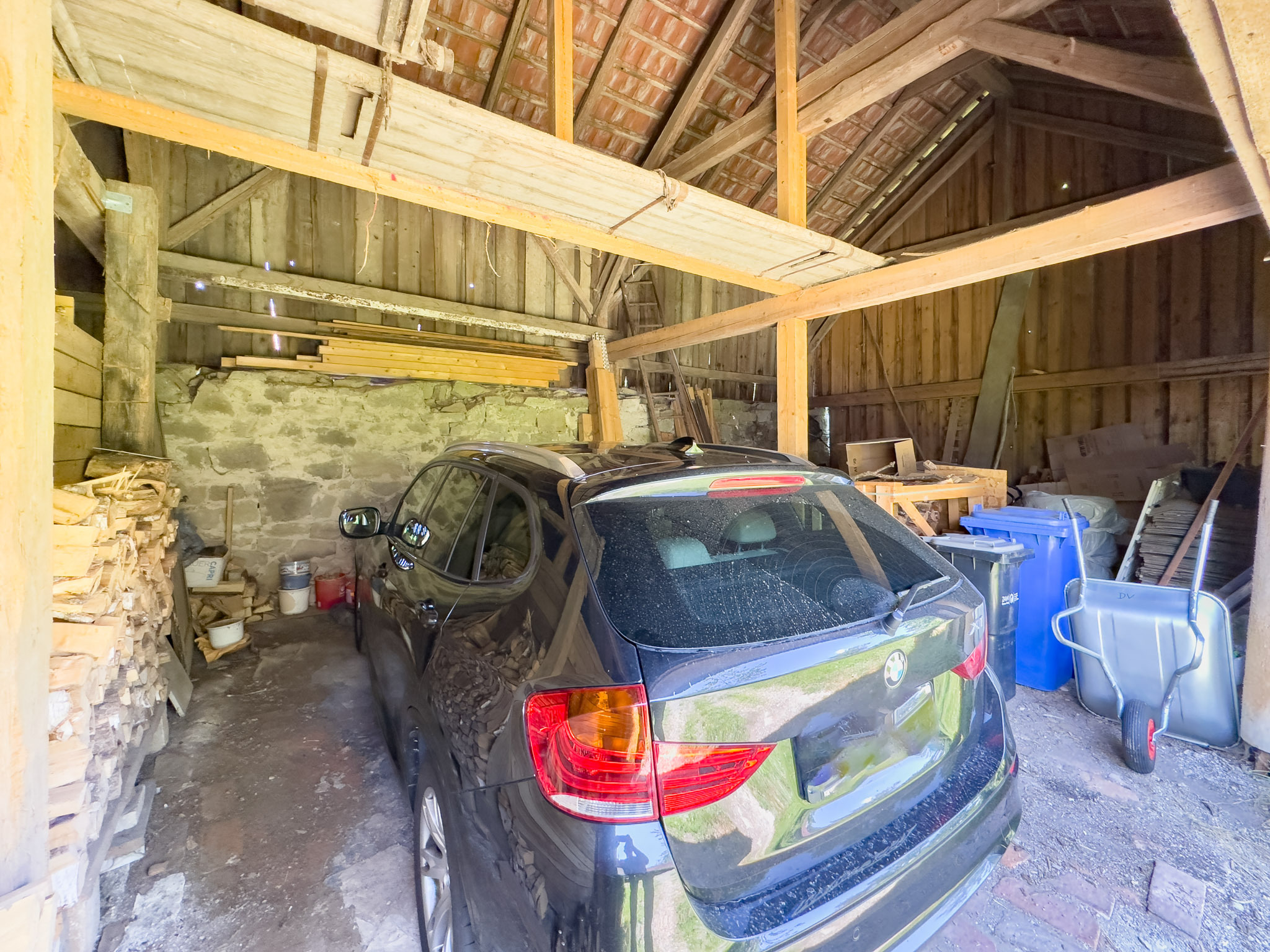 Zum Anwesen gehört neben dem Bauernhaus auch eine vielseitige Scheune, ein alter Stall (derzeit als Carport genutzt), sowie ein Grundstück mit knapp 6.000 m².