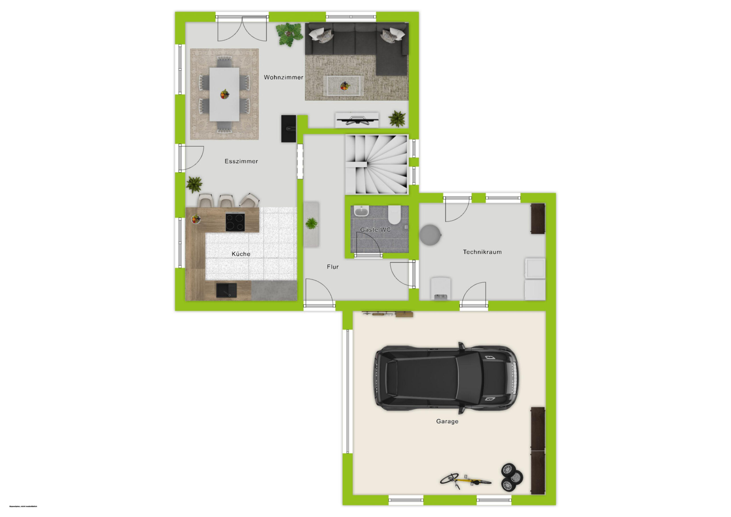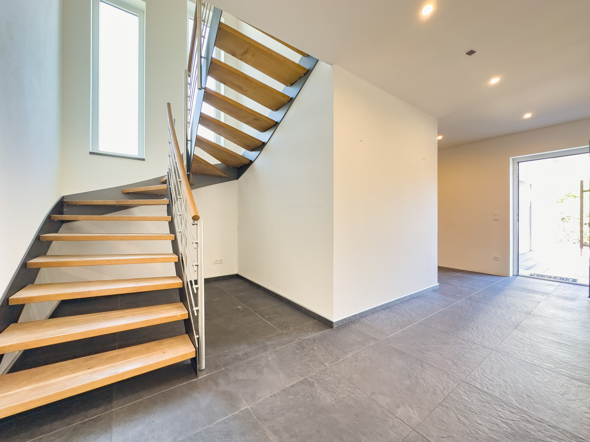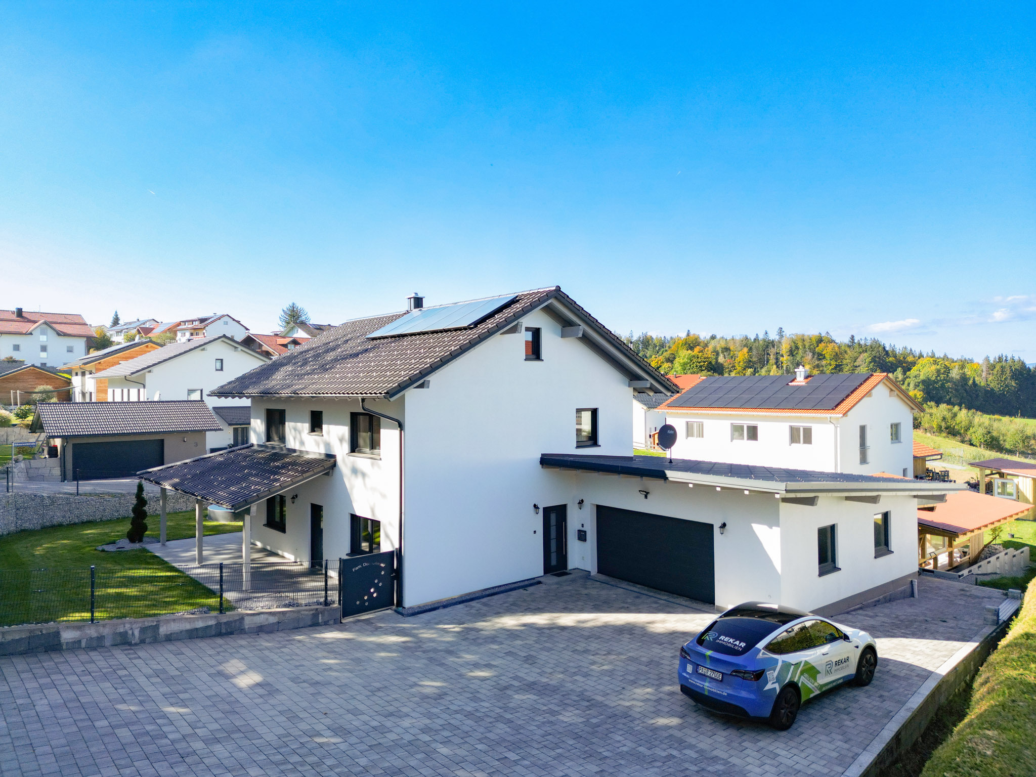 Clever geplant bis ins Detail – Praktisch ist auch das, was man auf den ersten Blick gar nicht sieht: ein großer Hauswirtschaftsraum mit Zugang zur Doppelgarage und zum Garten, vorbereiteter Anschluss für eine Dusche, ein zusätzlicher Geräteraum und eine gepflasterte Einfahrt mit Platz für bis zu acht Autos. Selbst eine Wallbox-Vorbereitung für das E-Auto ist schon vorhanden.