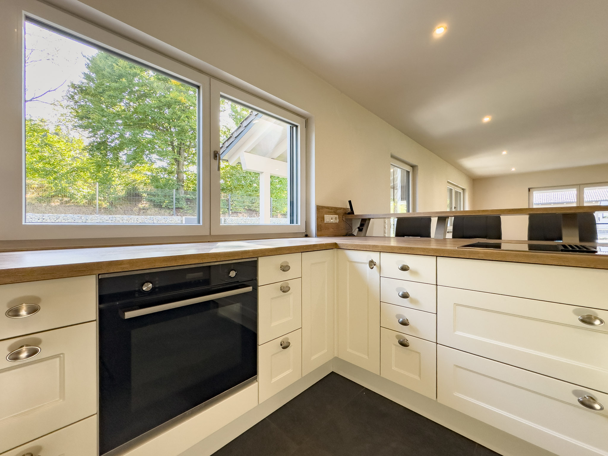 – Einbauküche mit Marken E-Geräten (MIELE und Bosch) inkl. Dunstabzug nach draußen