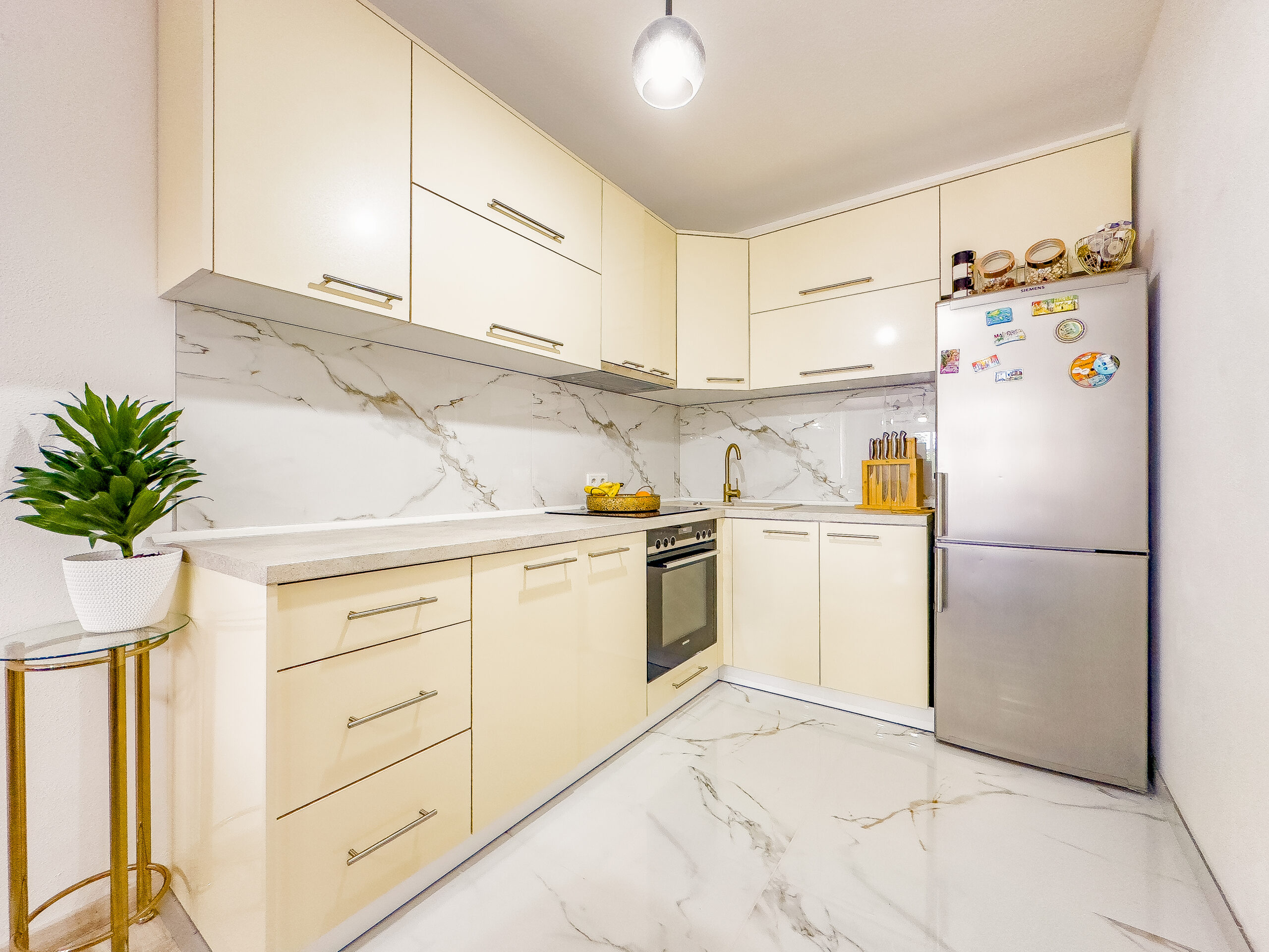 – neue Einbauküche BJ 2024 inkl. neuen, hochwertigen Marmorfliesen (120 x 60)