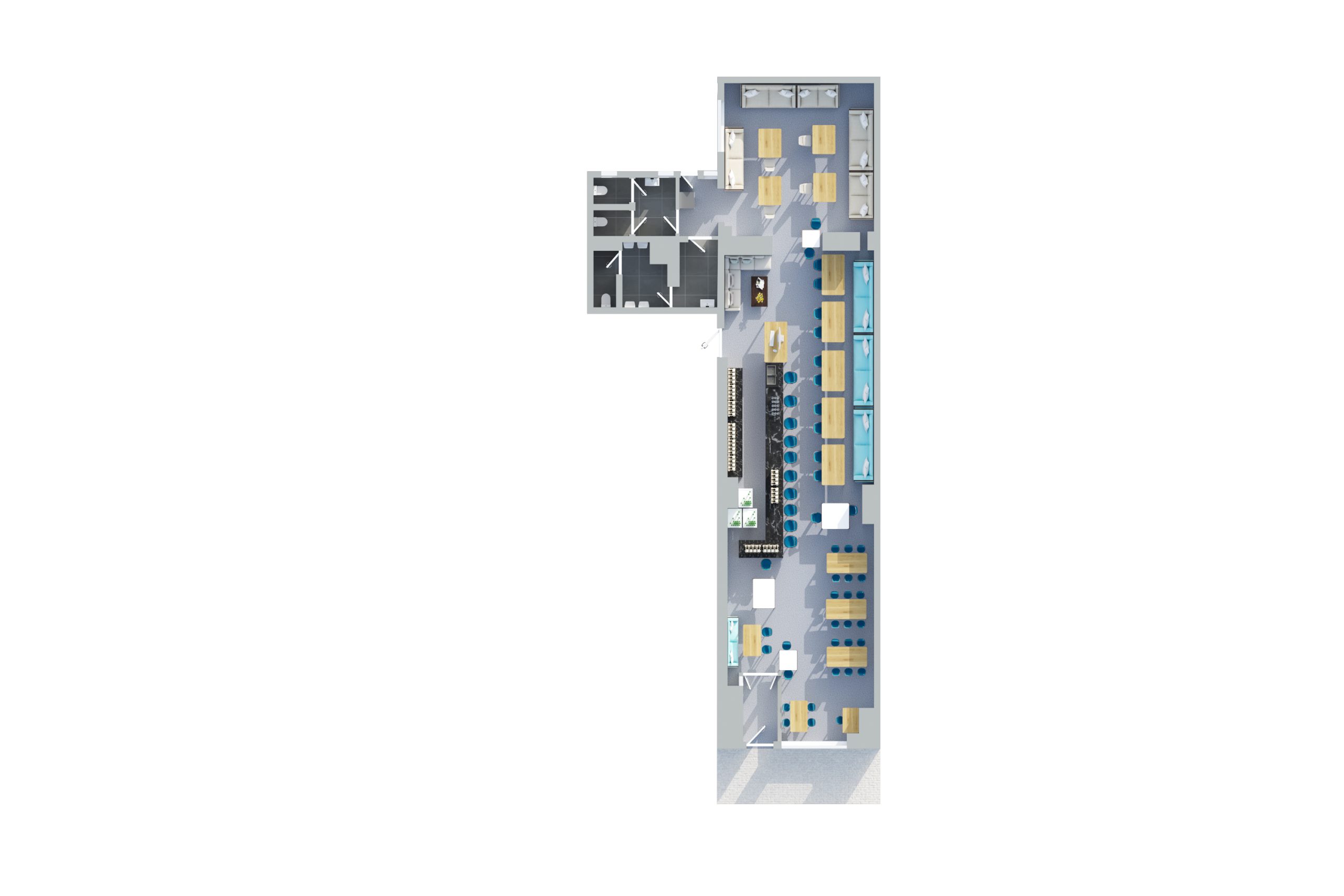 Mit einer Gesamtfläche von ca. 196 m², einschließlich der Gastroküche im Obergeschoss, bietet das Lokal Platz für bis zu 100 Gäste – abhängig von Ihrem individuellen Raumkonzept.