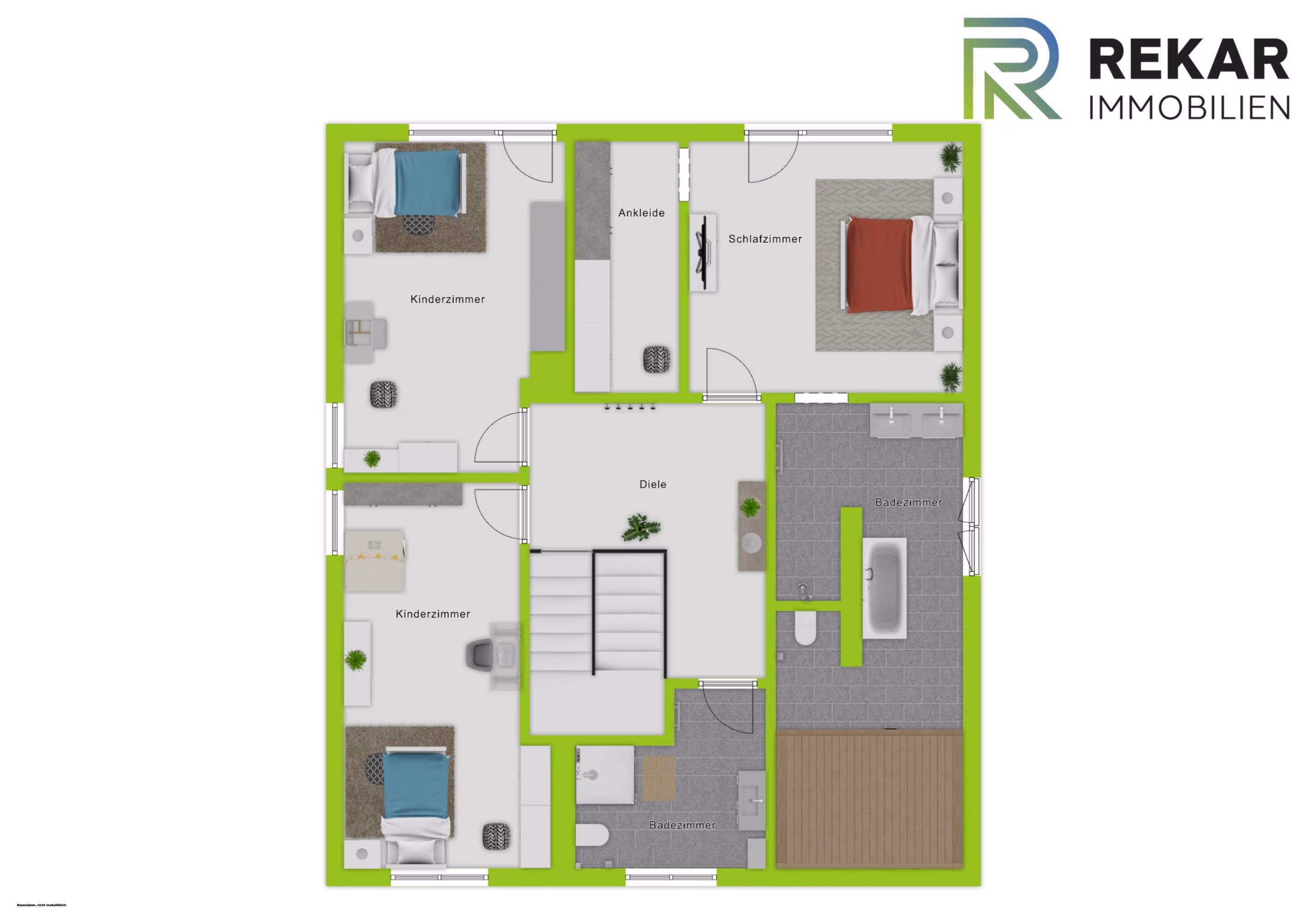 – in einem der beiden Kinderzimmern ist ein Küchenanschluss möglich