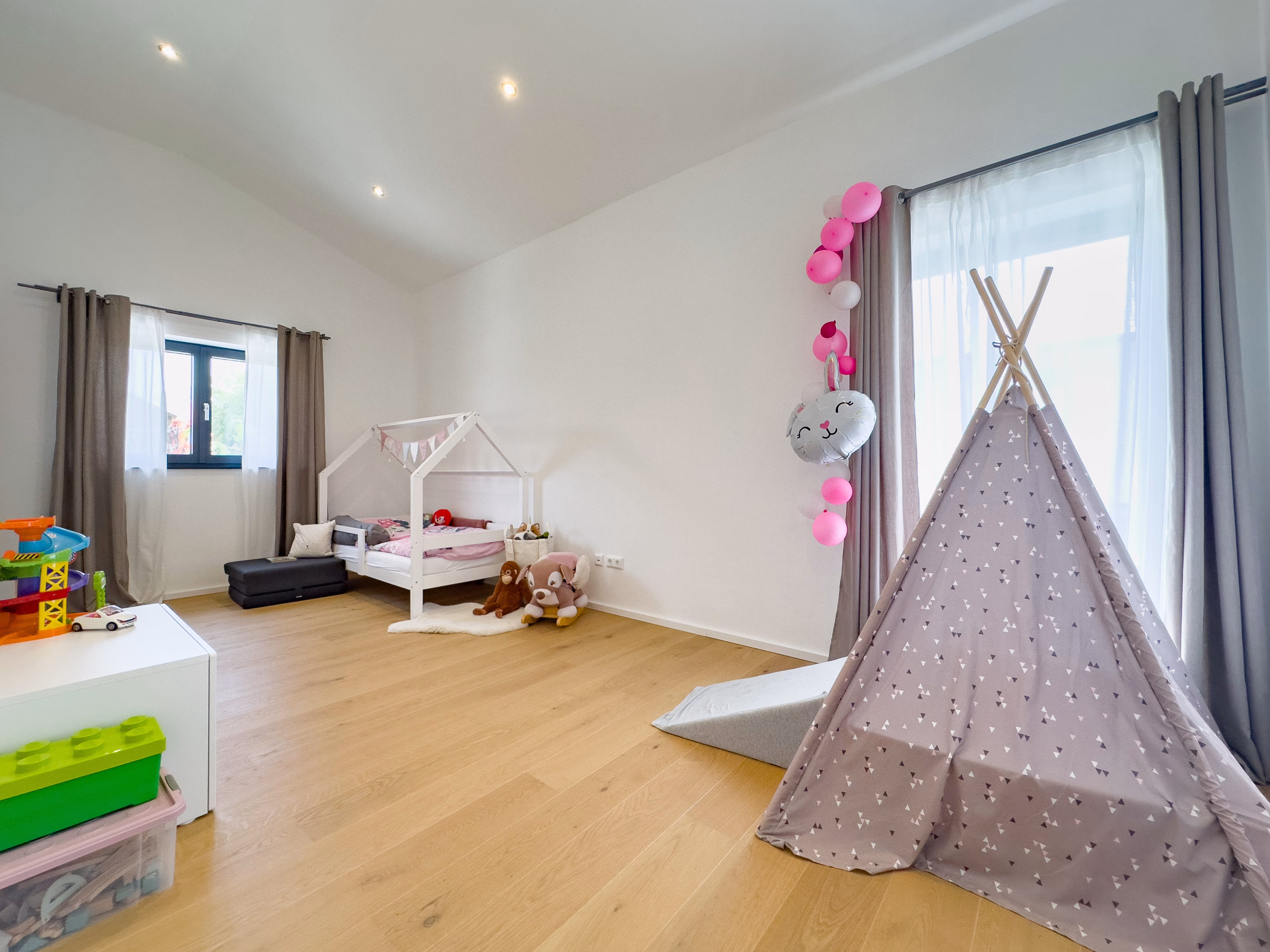 – aufgrund der 4,50 Meter hohen Decken wäre eine zweite Ebene in den Kinderzimmern möglich (z.B. für ein Hochbett)