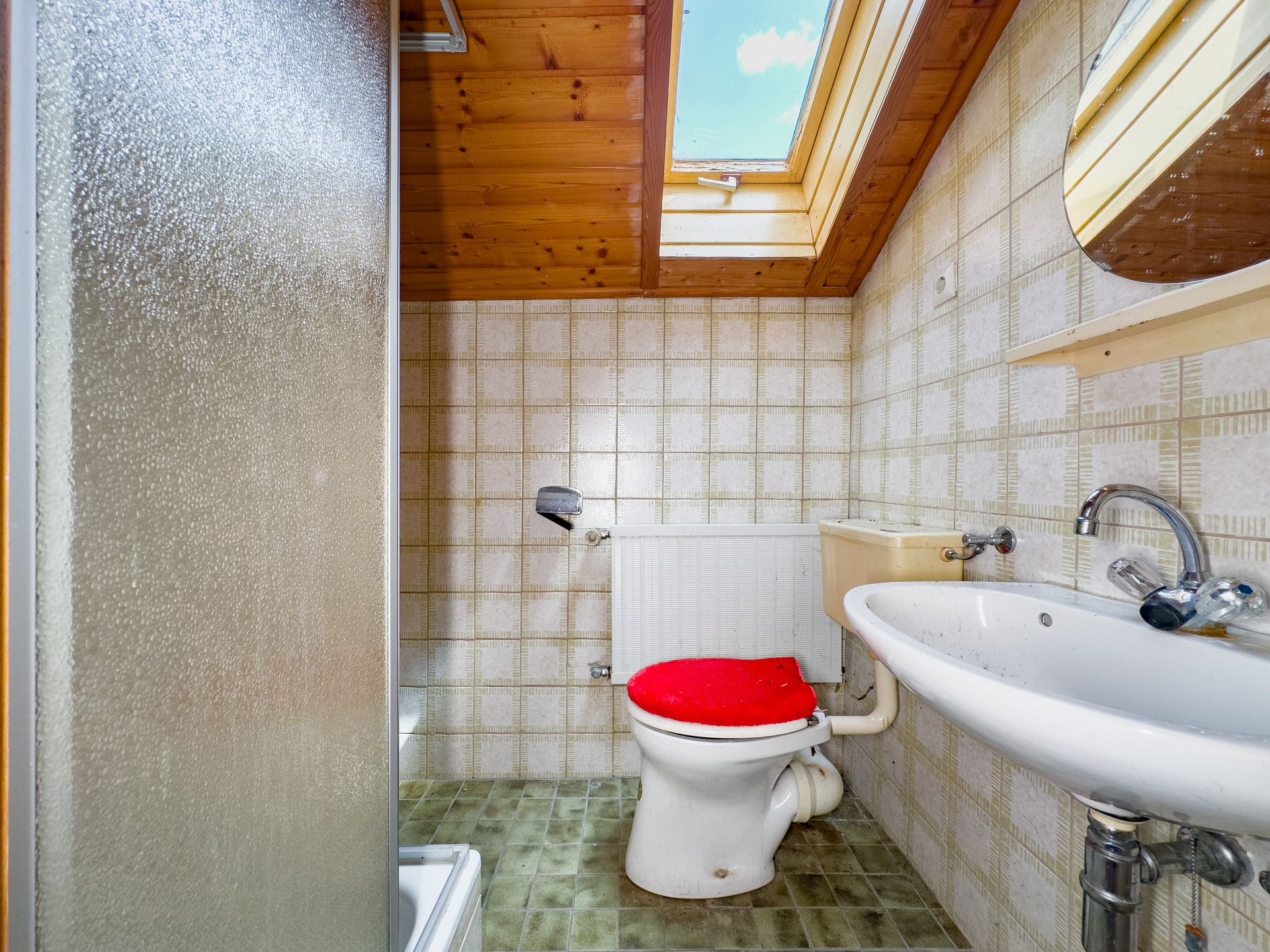 – Badezimmer mit Dusche, WC, Waschbecken und Dachfenster