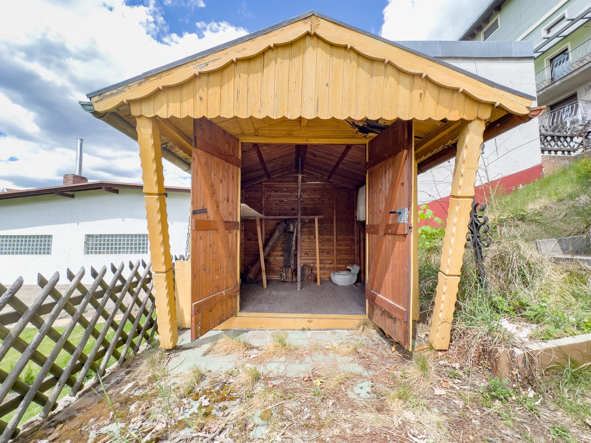 – Hanggarten mit 2 Gartenhäuschen und Zugang von der Straße