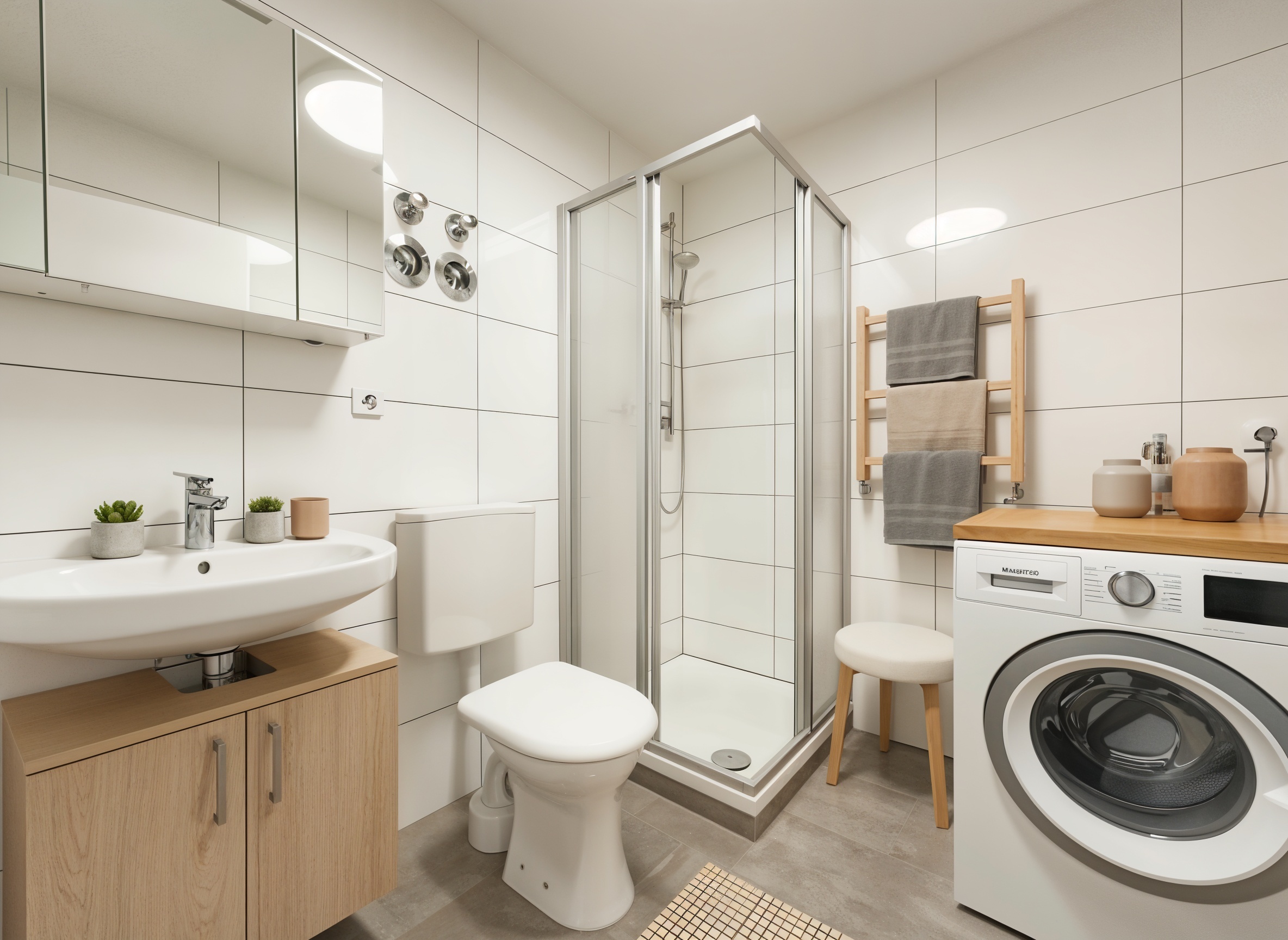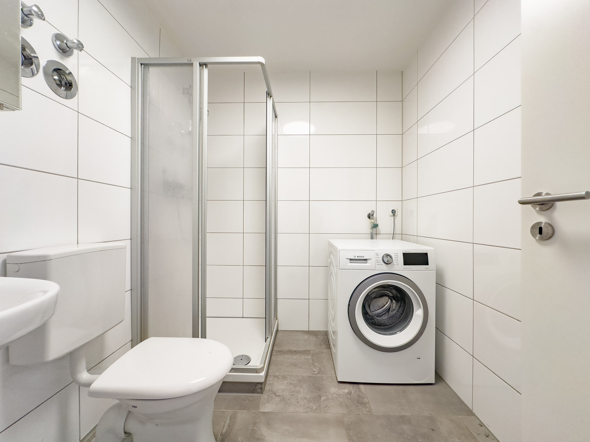 – Badezimmer mit Dusche, WC und Waschmaschine
