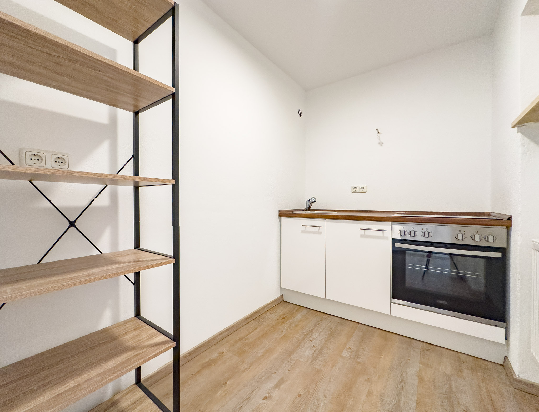 Die Ausstattung ist modern und pflegeleicht: Vinyl- und Fliesenböden, ein Badezimmer mit Dusche, WC und Waschmaschine sowie eine kompakte Singleküche, die 2021 eingebaut wurde. Für ein angenehmes Wohnklima sorgen dreifach verglaste Kunststofffenster mit Rollos (2020) sowie erneuerte Heizkörper. Ergänzt wird das Angebot durch ein Kellerabteil und einen Außenstellplatz.