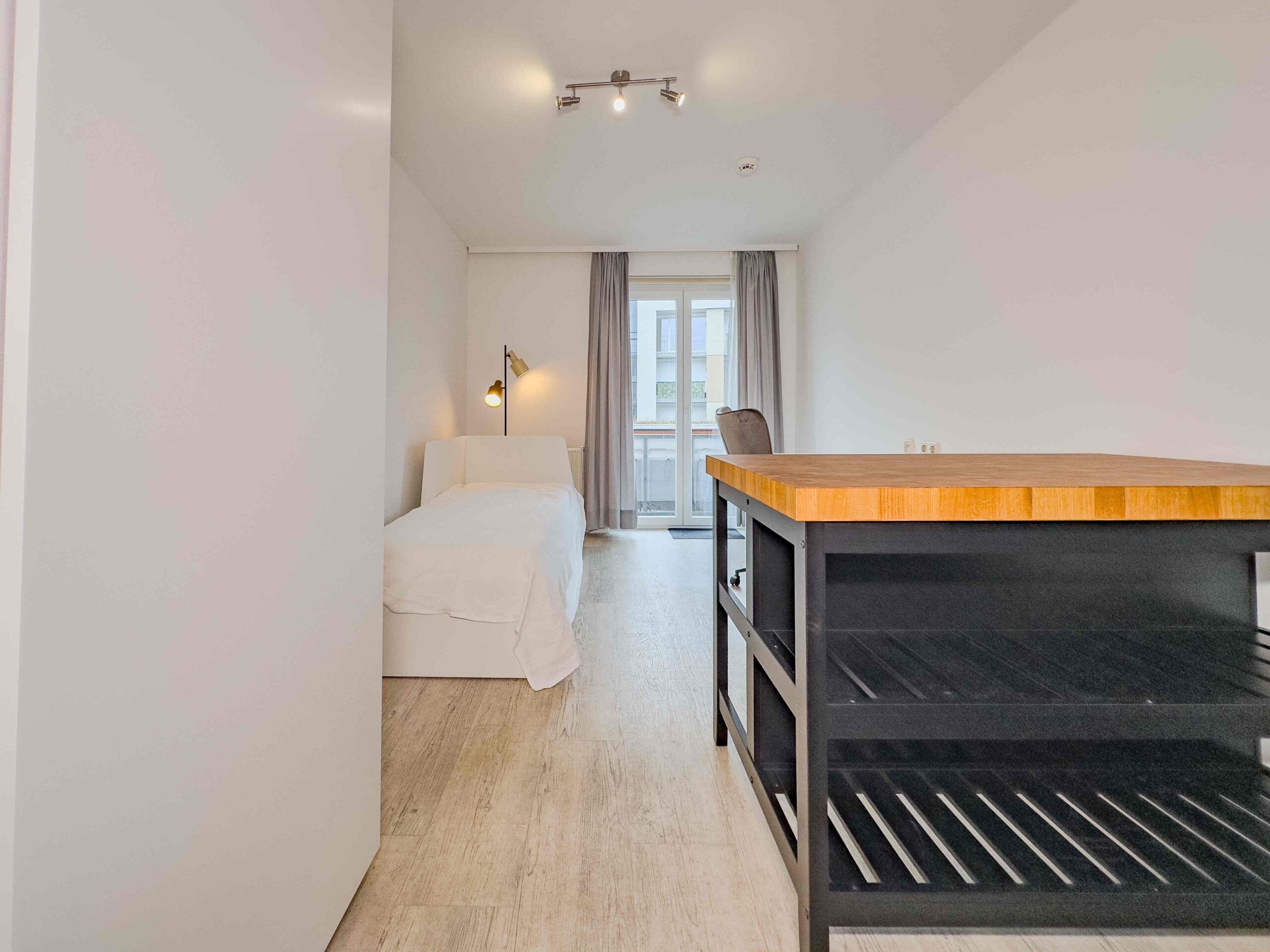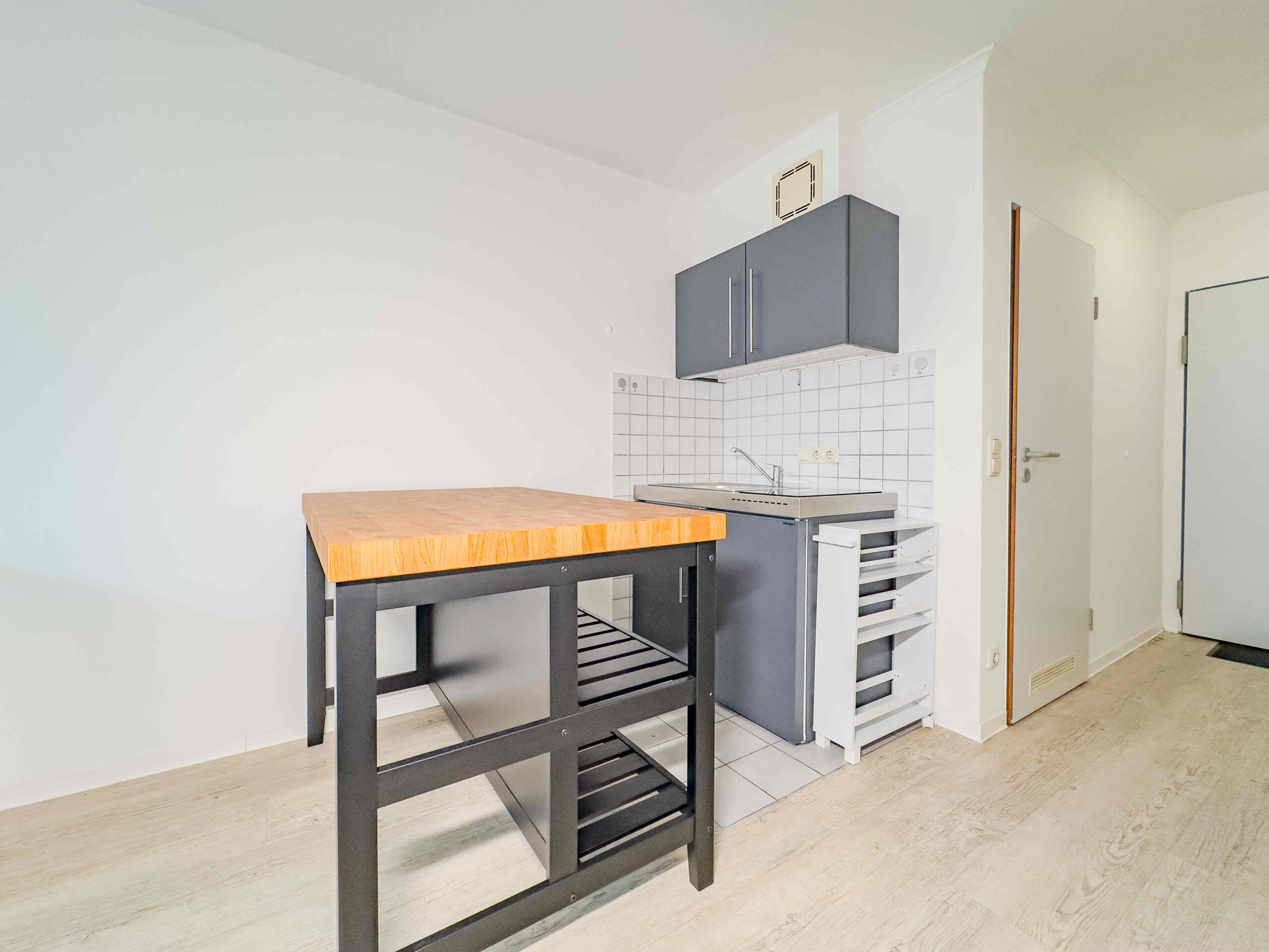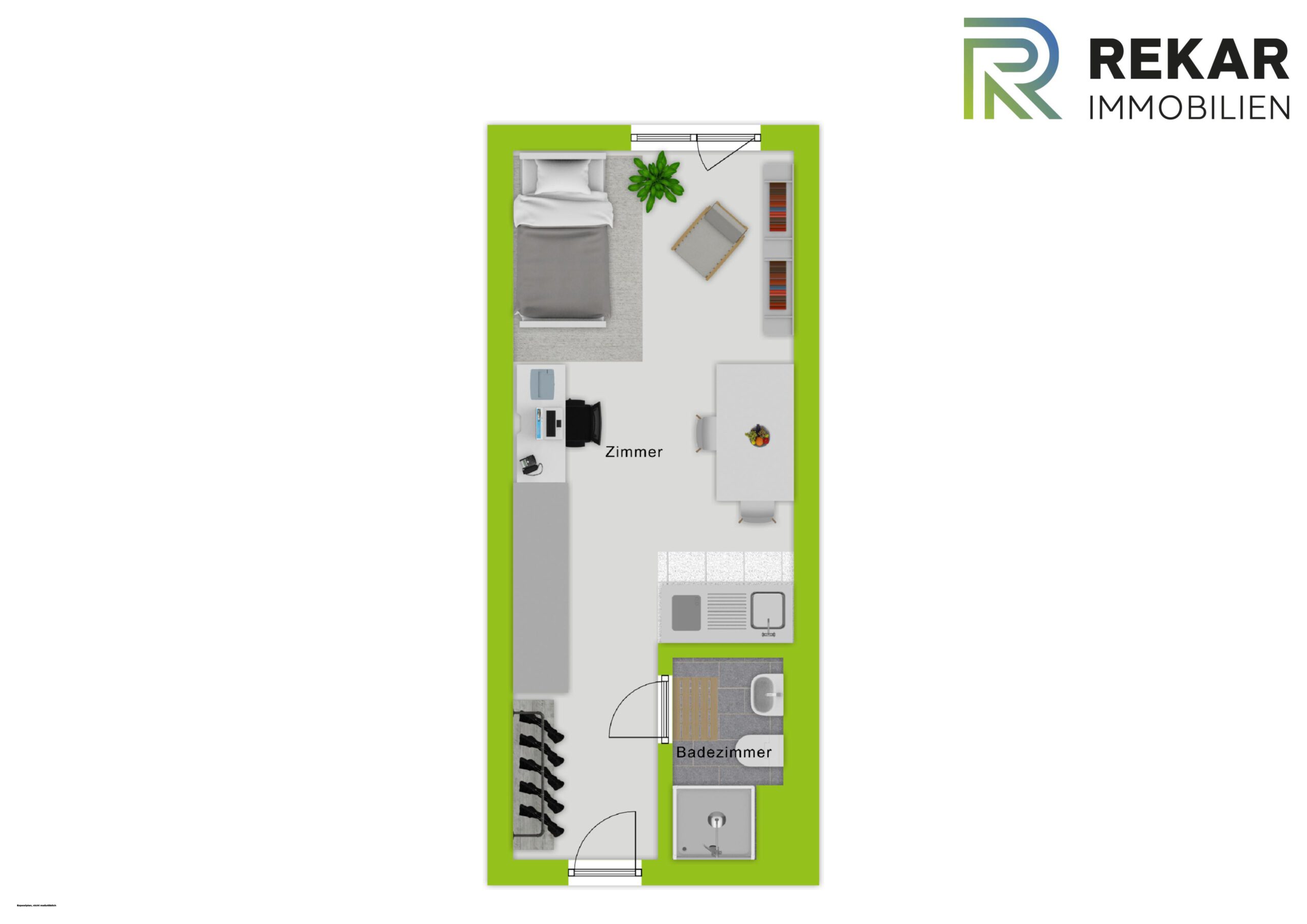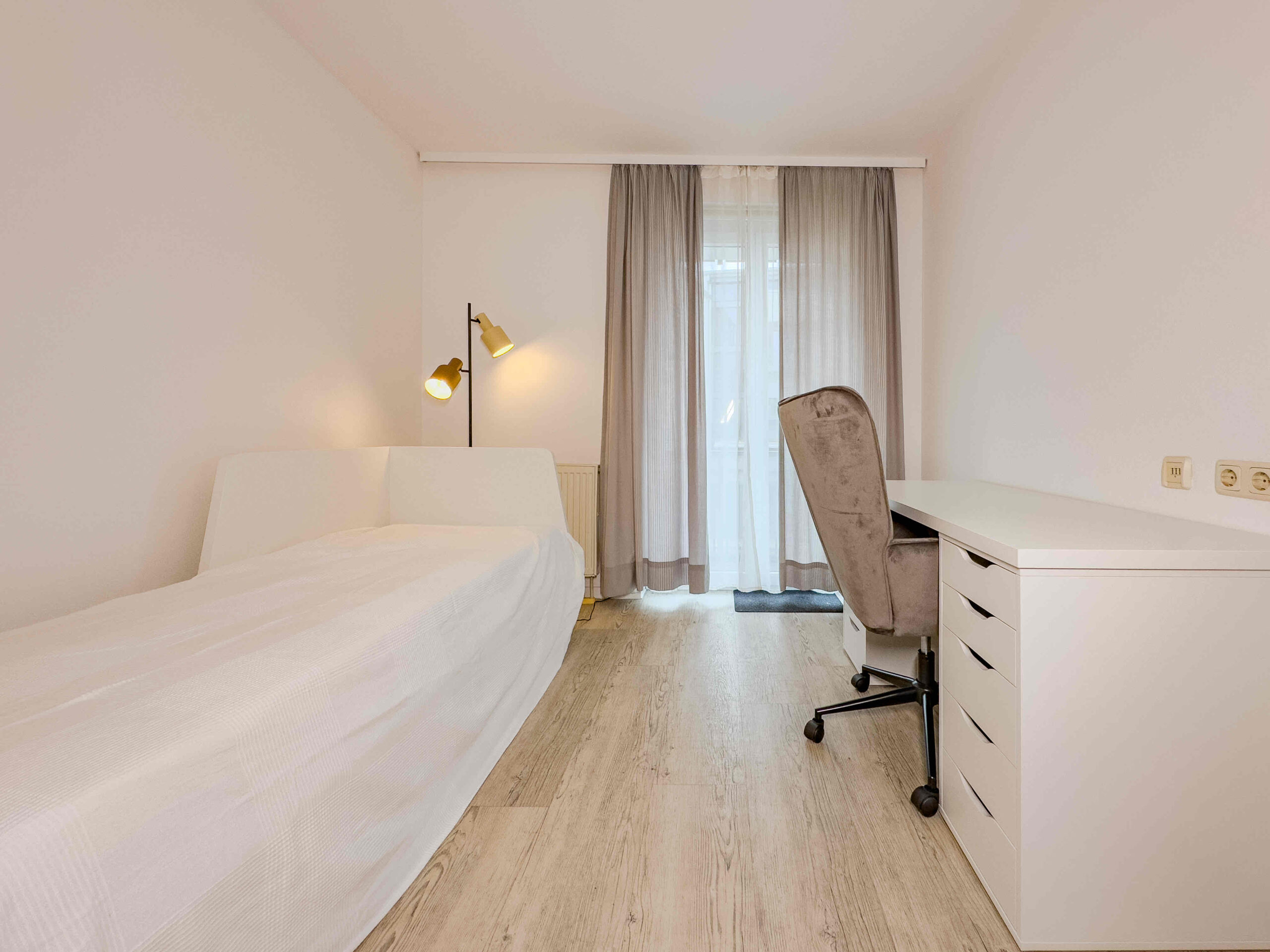 Die Einrichtung lässt keine Wünsche offen: Ein neuer Kleiderschrank, ein modernes Bett und ein praktischer Schreibtisch in zeitlosem Weiß machen das Wohnen hier besonders angenehm. Die Single-Küche ist perfekt ausgestattet – inklusive Kühl-/Gefrierkombi und Cerankochfeld – und bereit für alles, vom schnellen Frühstück bis zur Mitternachts-Pasta. Das Bad mit Dusche und WC bietet alles, was du brauchst, um dich frisch und startklar zu fühlen.