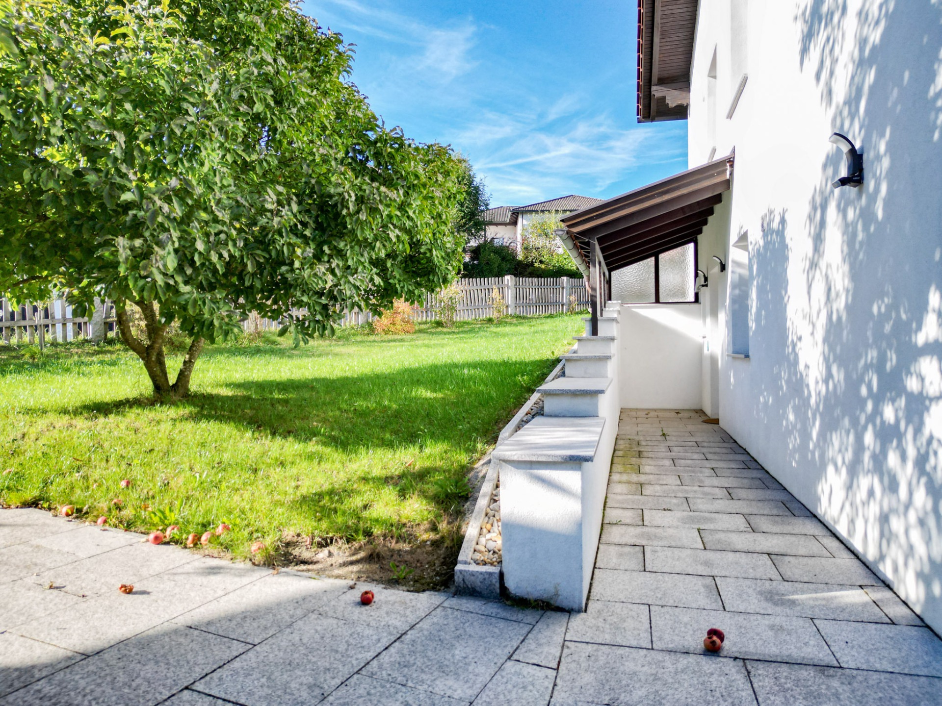 – Wege und Treppe zur Garage mit neuen Granitsteinen verlegt