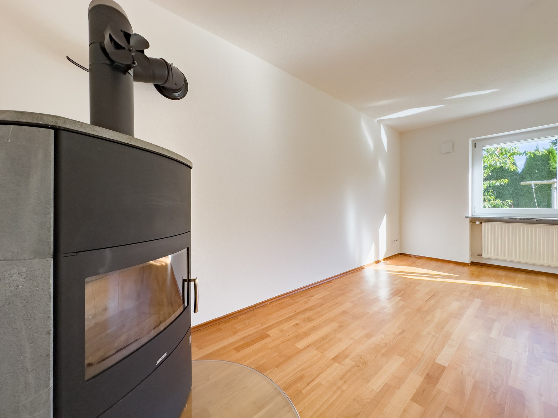 – Holzofenanschluss im Wohnzimmer