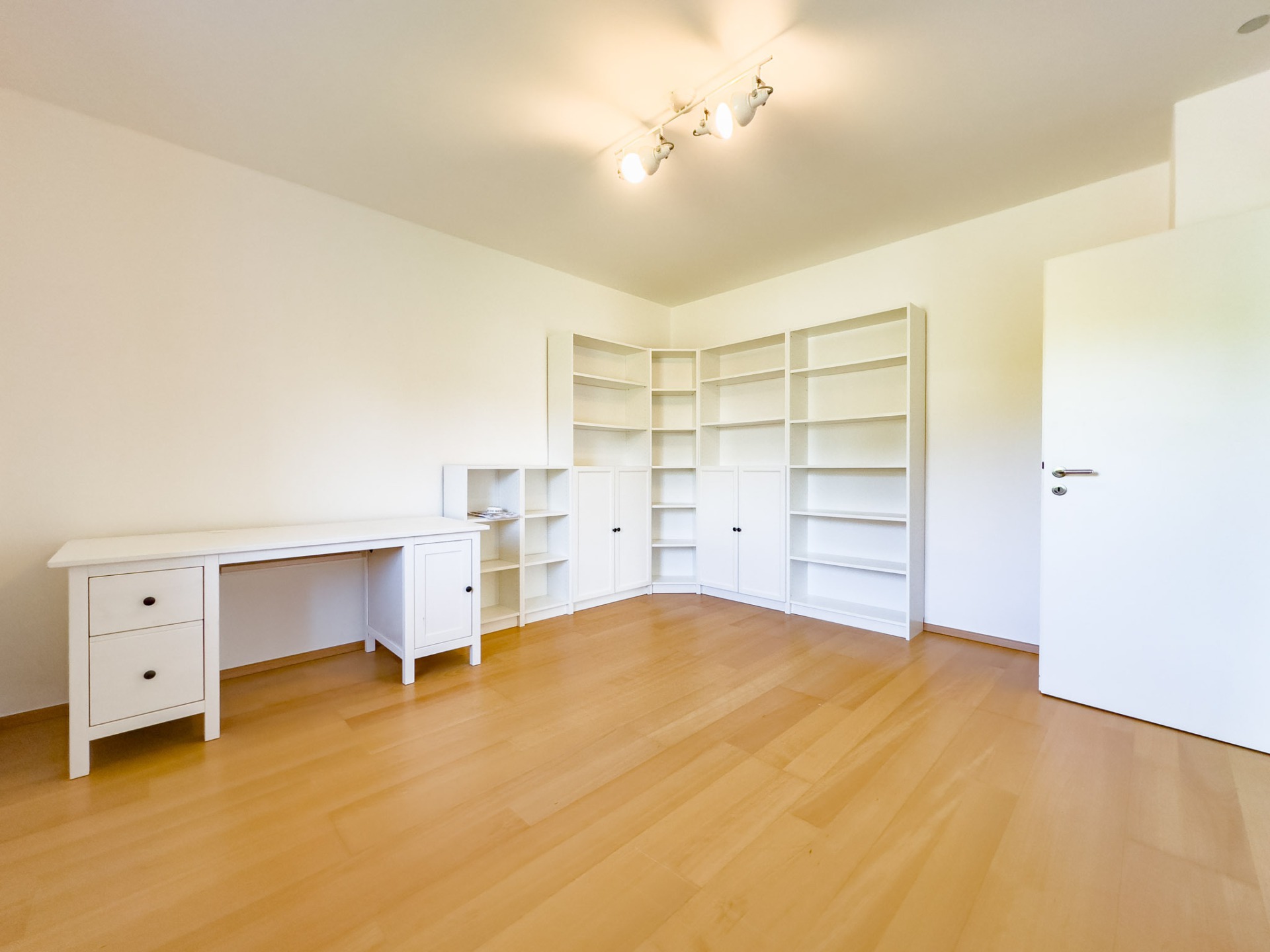 Im oberen Bereich setzt sich dieses durchdachte Gefühl fort. Schlafzimmer, die wirklich als Rückzugsorte funktionieren. Ein Elternbereich mit Ankleide, Kinderzimmer mit Platz zum Wachsen, dazu Räume, die heute Büro sind und morgen etwas ganz anderes sein dürfen. Alles wirkt ruhig, stimmig und hochwertig – nichts wirkt improvisiert.