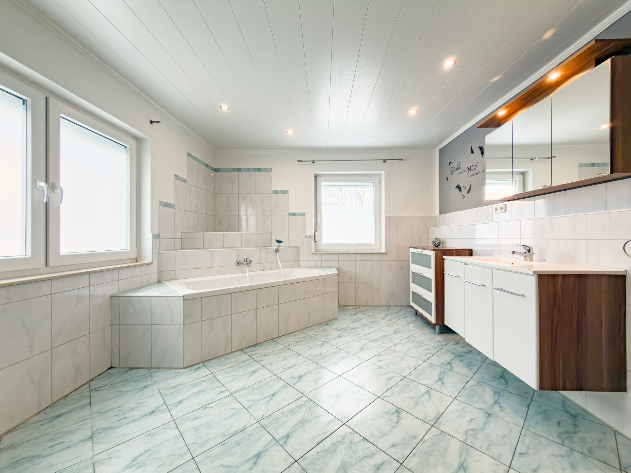 - Badausstattung: Dusche, Badewanne, Fenster