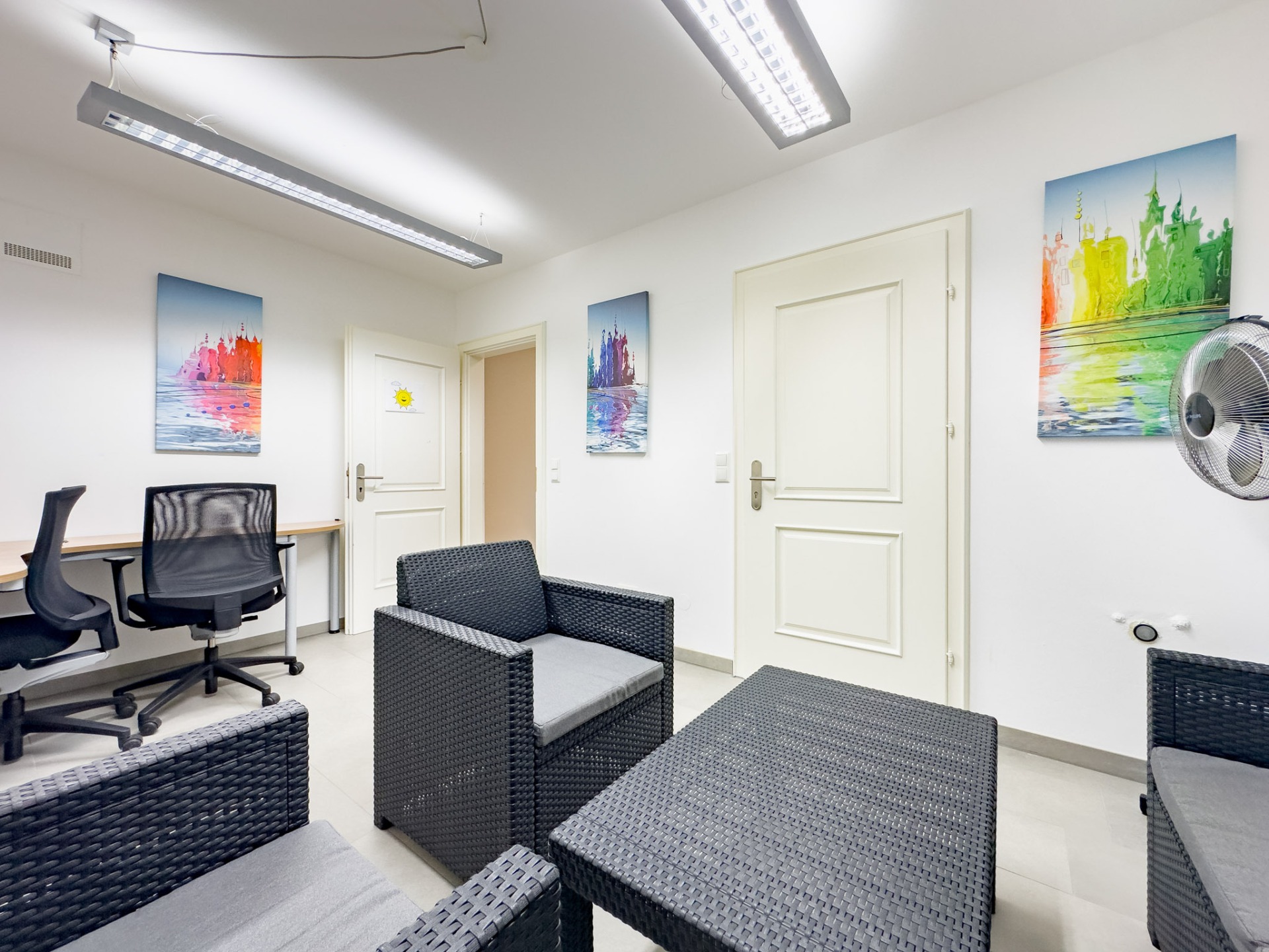 Sechs gut geschnittene Räume bieten ideale Voraussetzungen für Bürogemeinschaften, Beratungsstellen oder Therapiepraxen. Besonders attraktiv ist die Möglichkeit, einen separaten Raum als Gemeinschaftsküche einzurichten – eine bestehende Küche kann auf Wunsch vom Vormieter übernommen werden. Ergänzt wird das Raumangebot durch zwei separate WCs, einen praktischen Abstellraum sowie ein abschließbares Kellerabteil, das sich hervorragend als Archiv eignet.